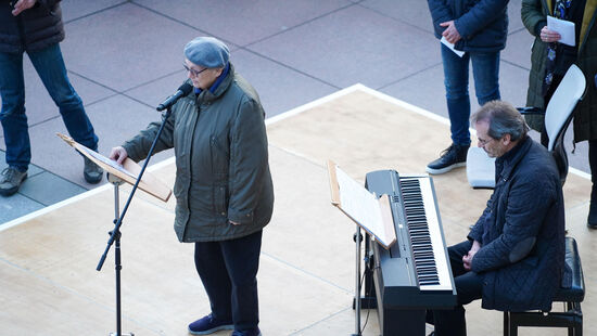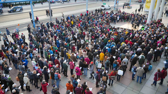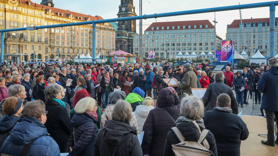 Rund 200 Menschen folgten am Nachmittag der Einladung der Dresdner Philharmonie zum Bürgersingen "gegen Hass, Gewalt und für Frieden und Versöhnung".