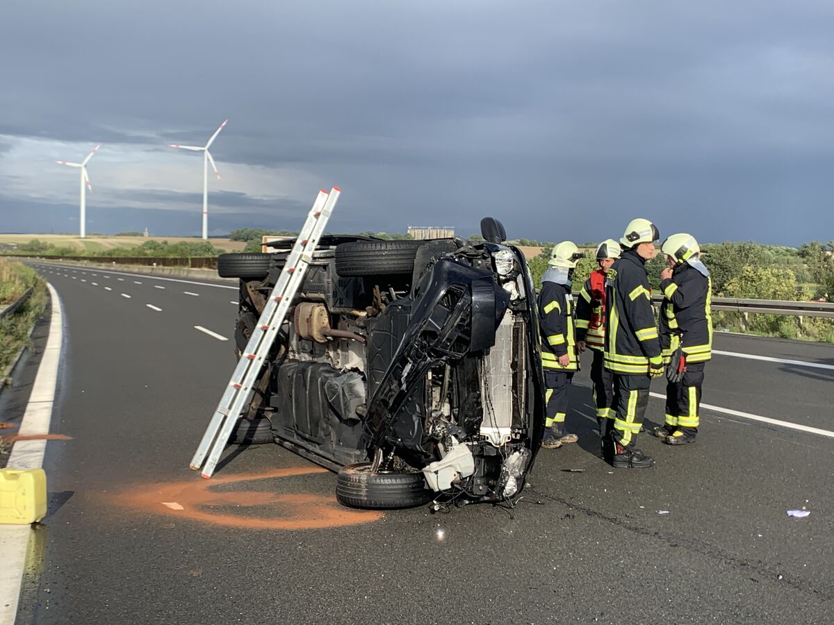- Der VW Bus landete auf der Seite.