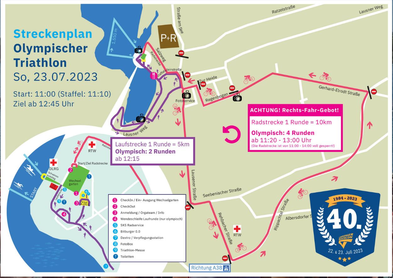 Dieses Wochenende steht in Leipzig im Zeichen des Triathlon. Zum 40. Mal findet die Veranstaltung in Leipzig statt. In diesem Jahr haben sich 1.800 Sportler für die verschiedenen Wettkämpfe angemeldet. Los geht es am Samstag mit dem Kinder- und Fitness- und Staffel -Triathlon. Am Sonntag steht der Olympische Triathlon an. Geschwommen wird im Kulkwitzer See, die Radstrecke führt vom See zum Gasthof Lausen. Und auch die Laufstrecke führt entlang des Sees zum Gasthof und wieder zurück. Die Wettkampfstrecken sind am Samstag bis 18 Uhr und am Sonntag bis 15 Uhr gesperrt.