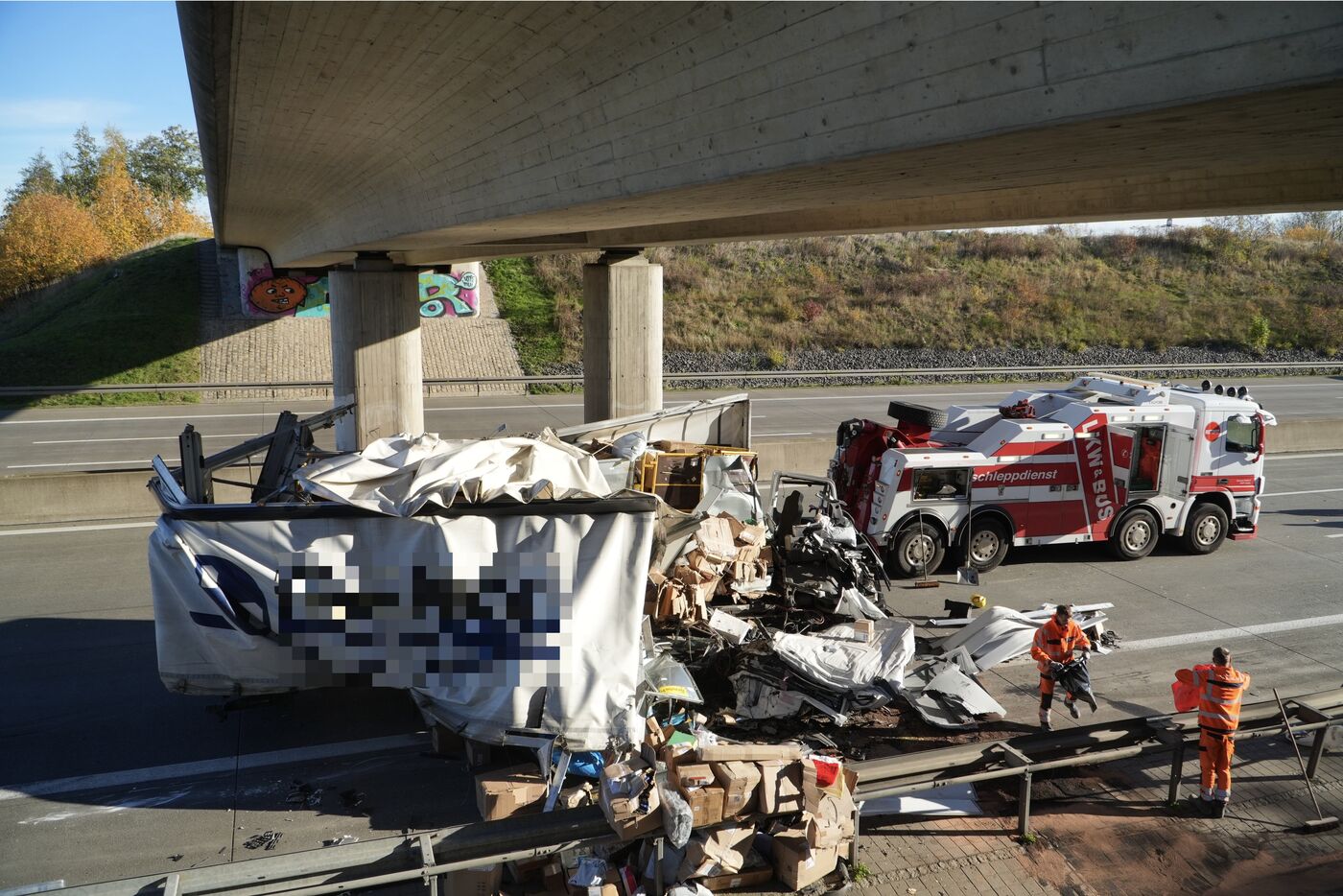- Einer der beiden Lkw wurde völlig zerfetzt - dass der Trucker hier fast heil rauskam, grenzt ein Wunder.