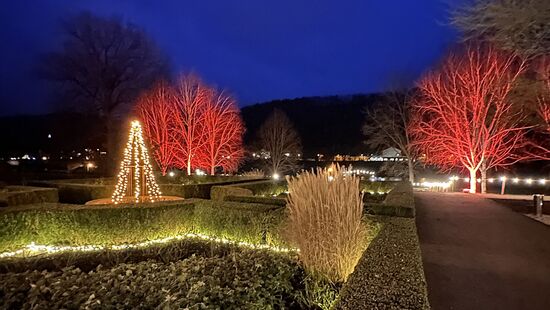 Und auch Veranstaltungen im Haus bieten wunderbare Unterhaltung: dazu gehören in diesem Winter eine Ausstellung von Landschaftsfotografien, Tanzabende mit Live-Musik, humorvolle Lesungen z.B. mit Dr. Peter Ufer zu Weihnachten oder Chor- und Musikkonzerte. Von November bis März strahlt zudem die Park- und Gartenanlage des Hotels in faszinierendem Lichterglanz und Farbenspiel. Im Schein festlicher Beleuchtung gibt es am „Kleinen Sendig“ auf der Parkterrasse an der Feuerschale Winzerglühwein und andere (herz)wärmende Spezialitäten begleitet von chilliger Musik.