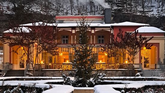 Glanzvoll entspannen und genießen - das ist ganzjährig, aber gerade auch in den Wintermonaten in diesem wunderschönen Villenensemble des Parkhotels möglich. Geschaffen wurde es von Rudolf Sendig, visionärer Hotelier in Bad Schandau ab 1880 als Ort „zum Gesunden“ und es versprüht bis heute mediterrane Atmosphäre und steht für entspannten Genuss.