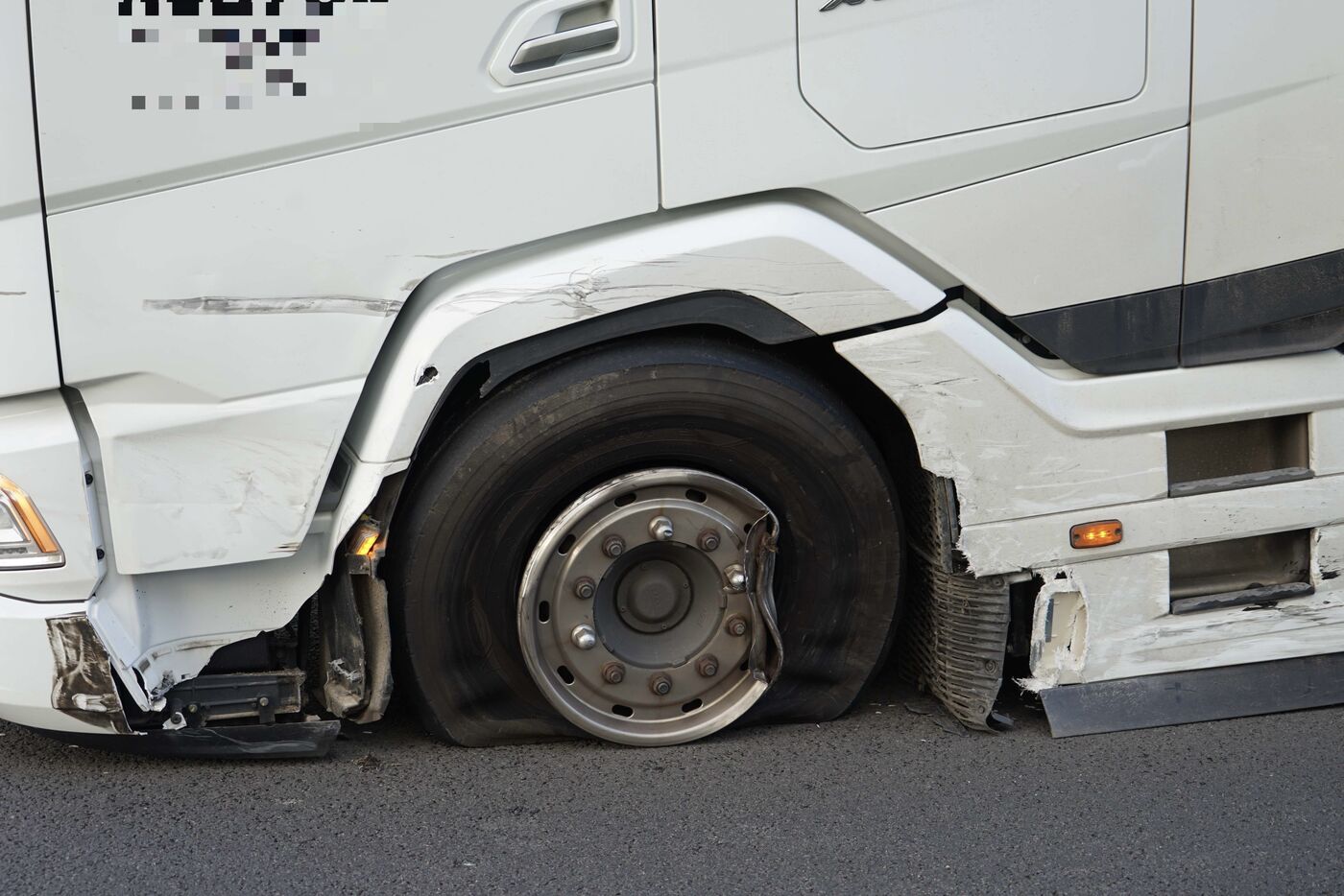 - Der Lkw wurde unfreiwillig tiefergelegt.