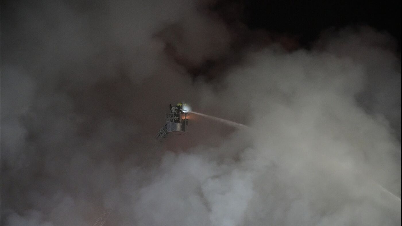 - Ein dicke Rauchwolke stieg von dem Brand in den Leipziger Nachthimmel.