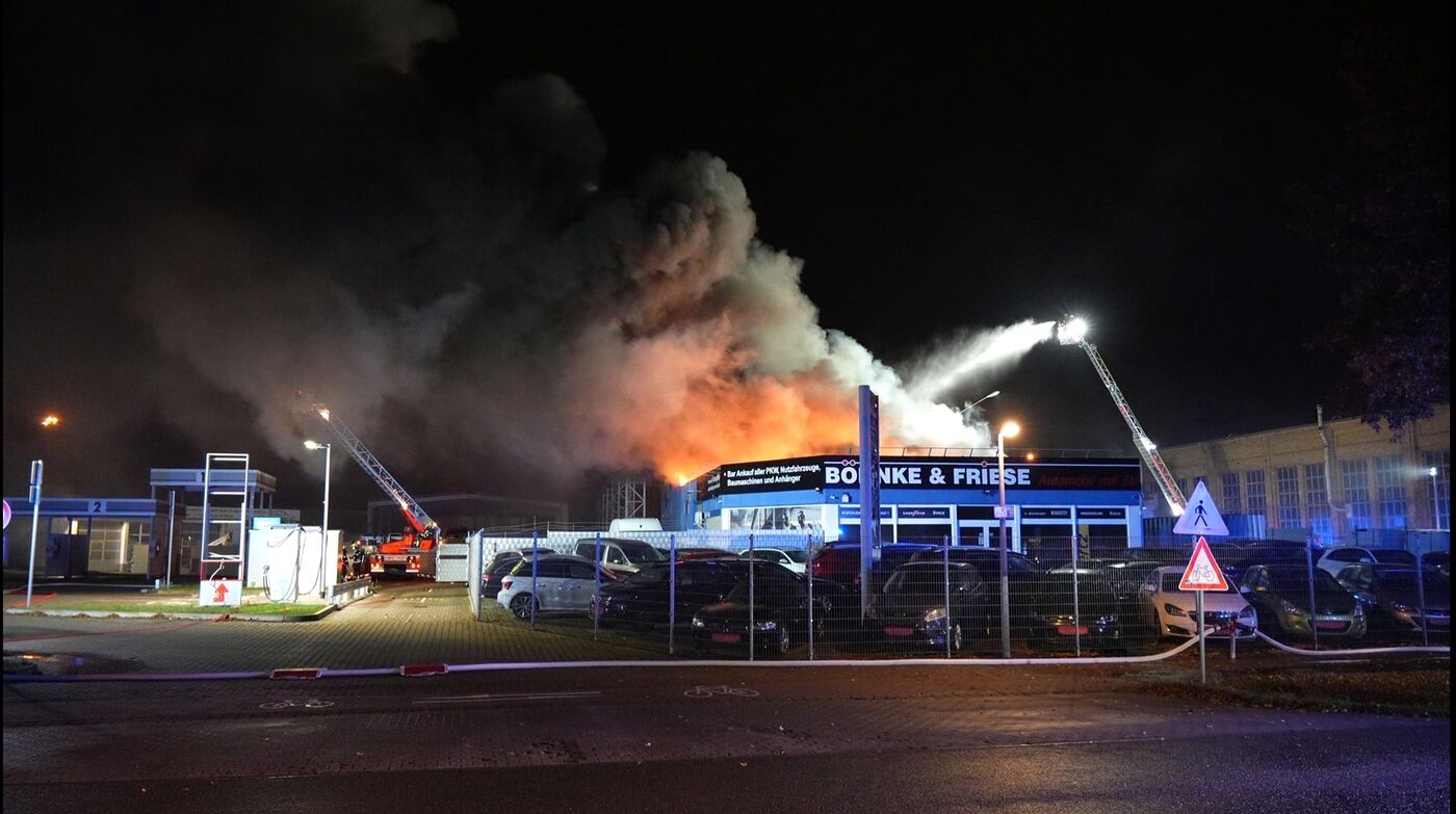 - Das Autohaus an der Güterstraße brannte lichterloh.