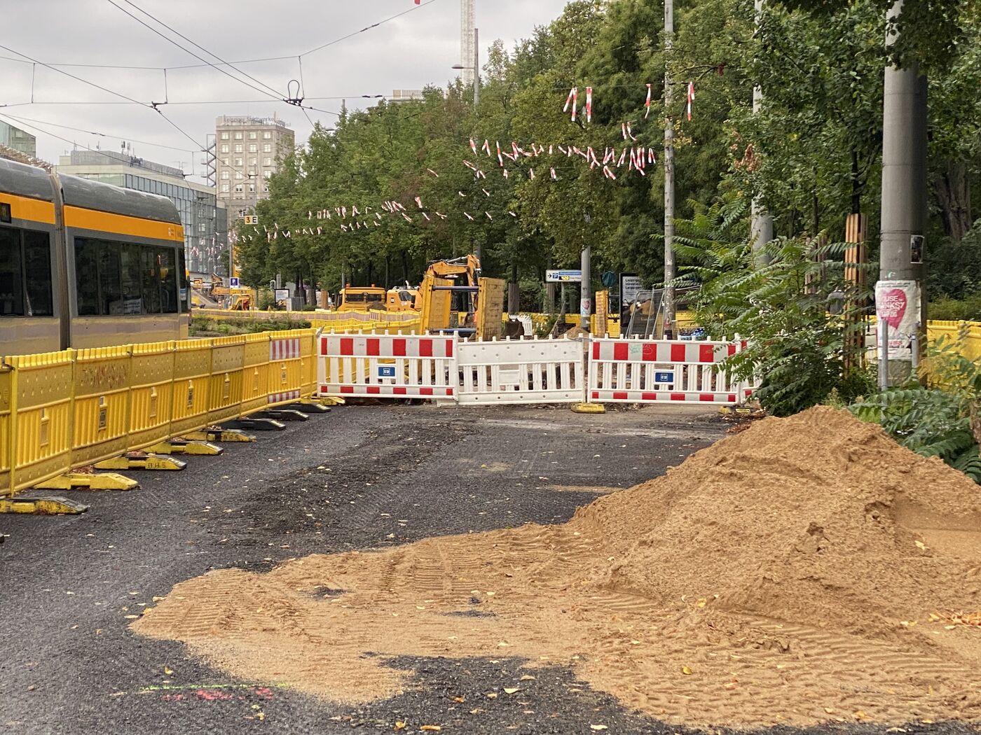 - Die Baustelle am Georgiring in der Leipziger Innenstadt. Hier werden schon seit März unter anderem Trink- und Abwasserkanäle erneuert.