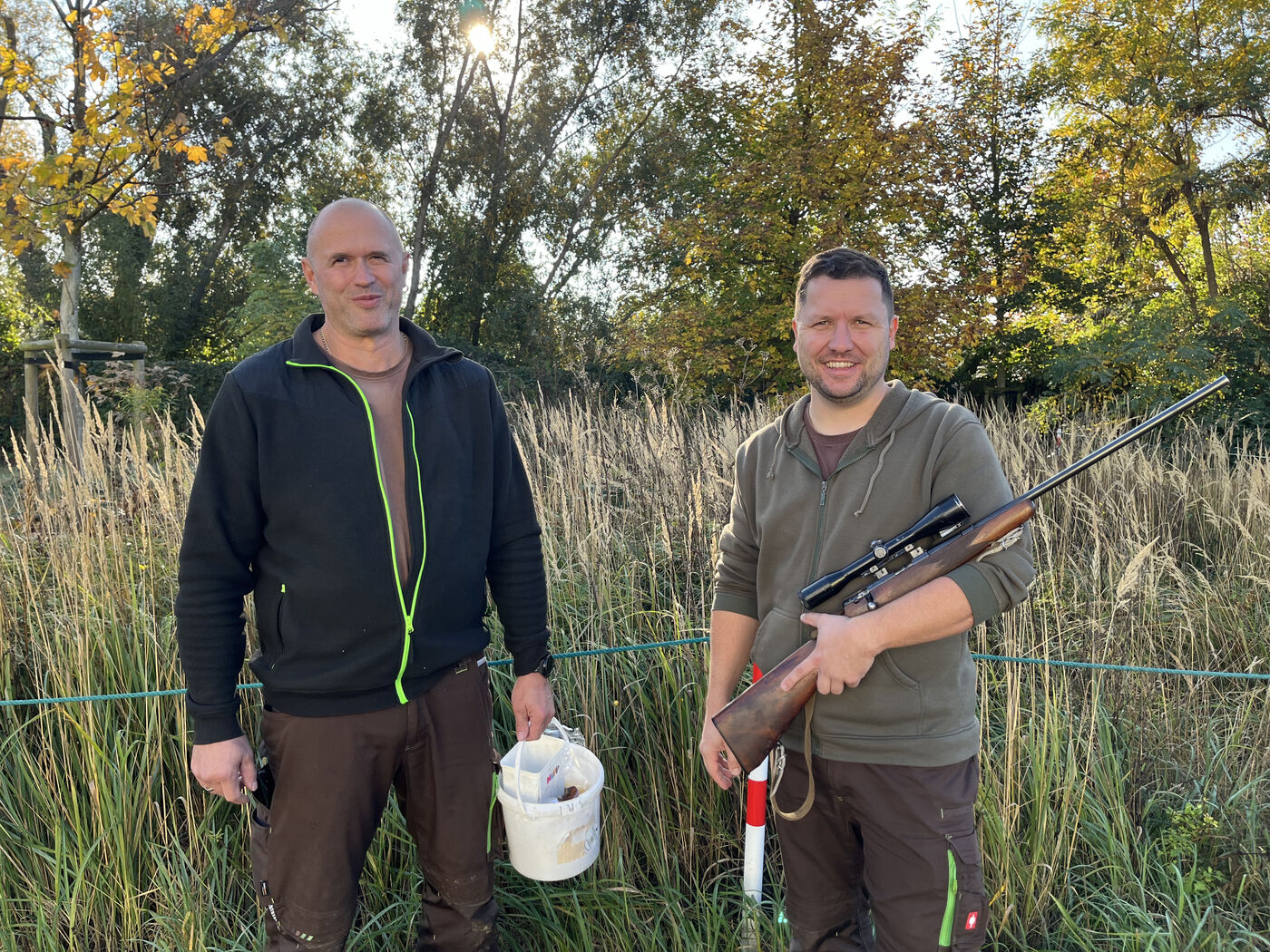 - Jens Fischer (mit Eimer) und Martin Matzick (mit Knarre) machen Leipziger Waschbären den Garaus.
