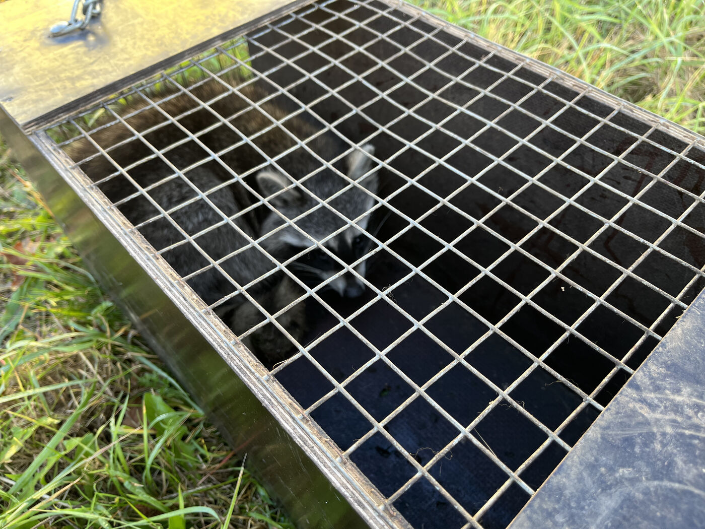- Ein Waschbär sitzt in der Falle.