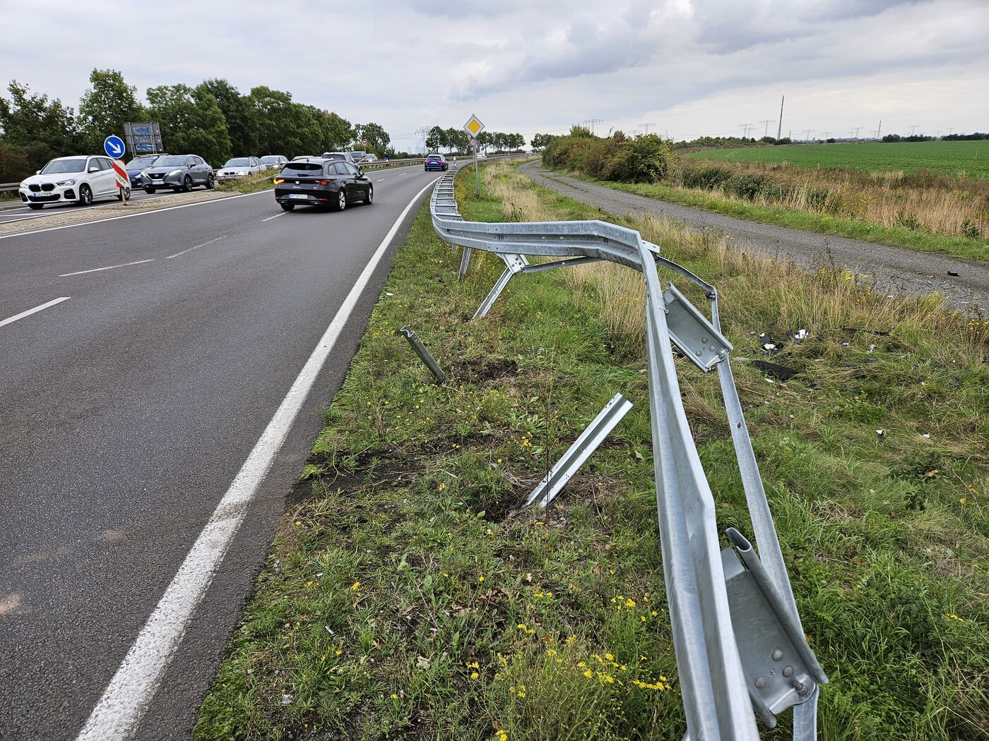 Genau dafür ist sie gemacht: Diese Leitplanke hat einen 22-Jährigen im Leipziger Stadtteil Großzschocher offenbar vor größeren Verletzungen bewahrt: Er wurde lediglich leicht verletzt, als er mit einem Peugeot hineinschlitterte.