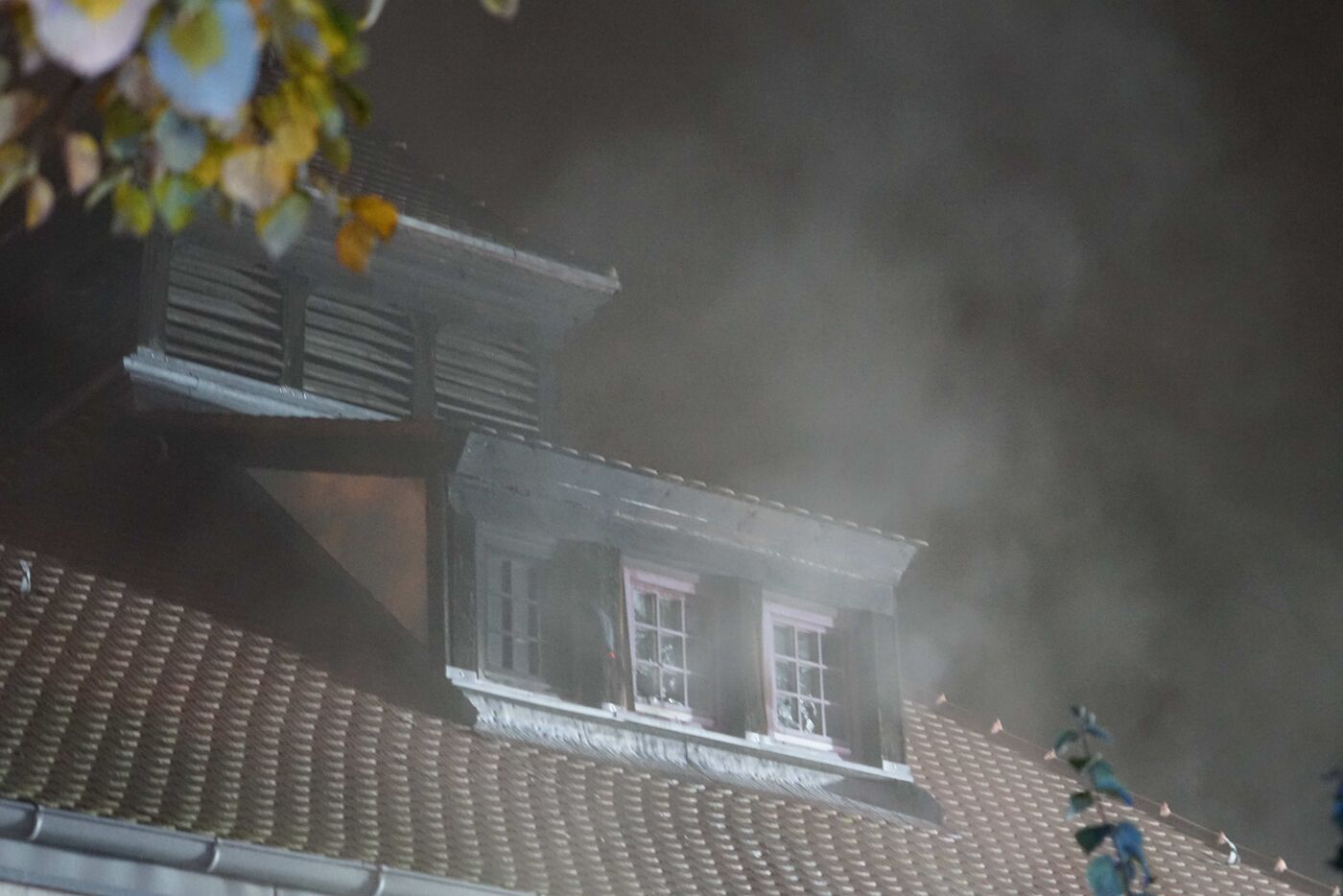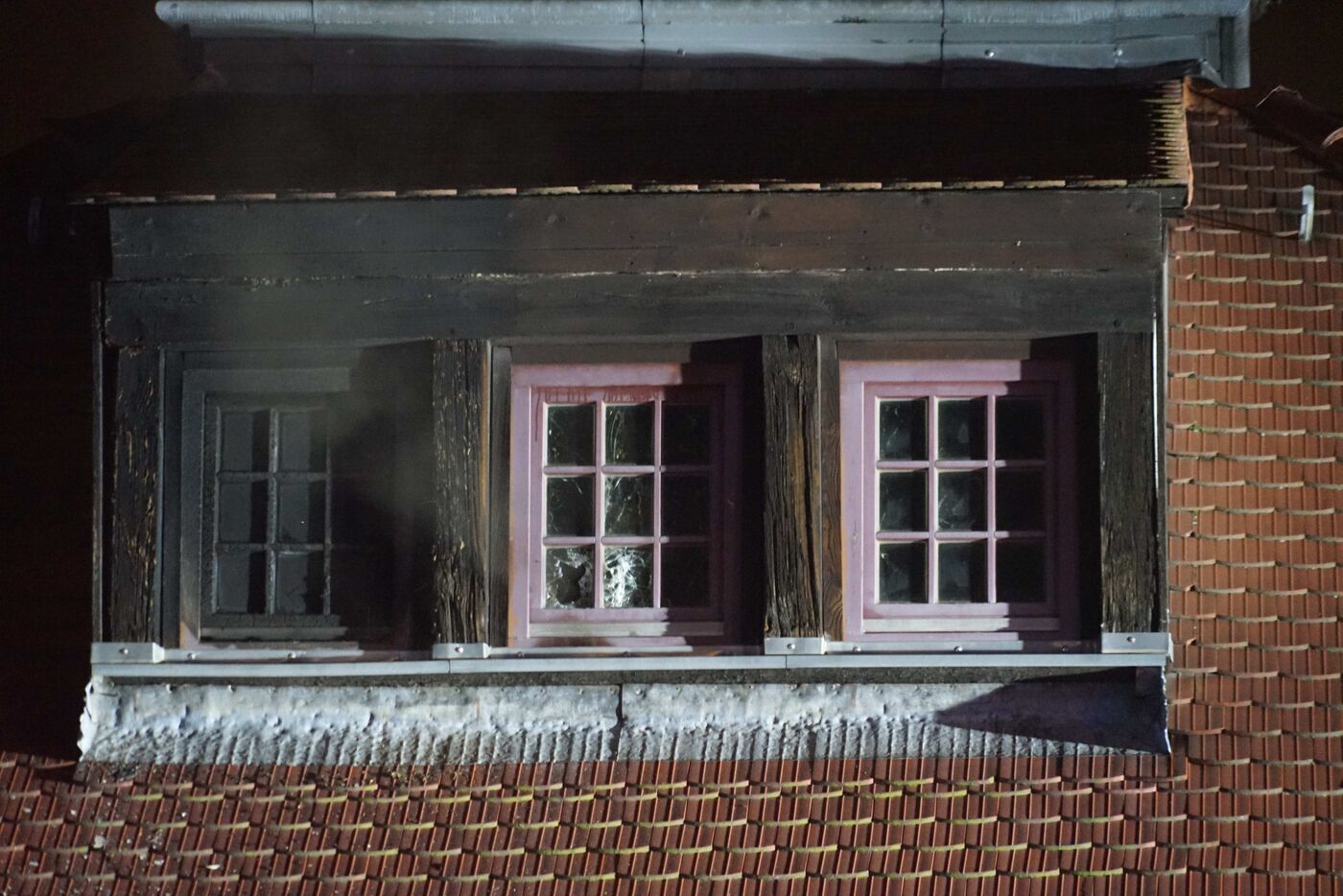- Aus den Fenstern im Obergeschoss quillt Rauch.