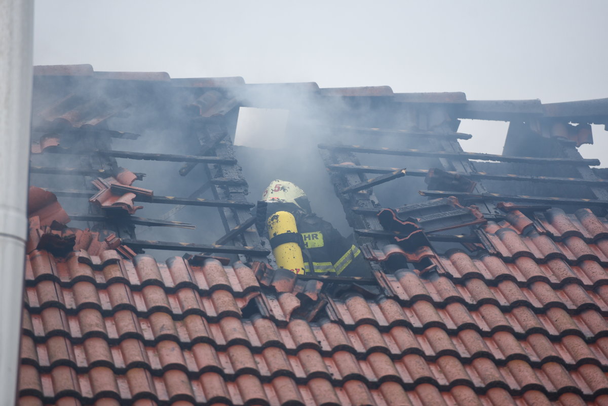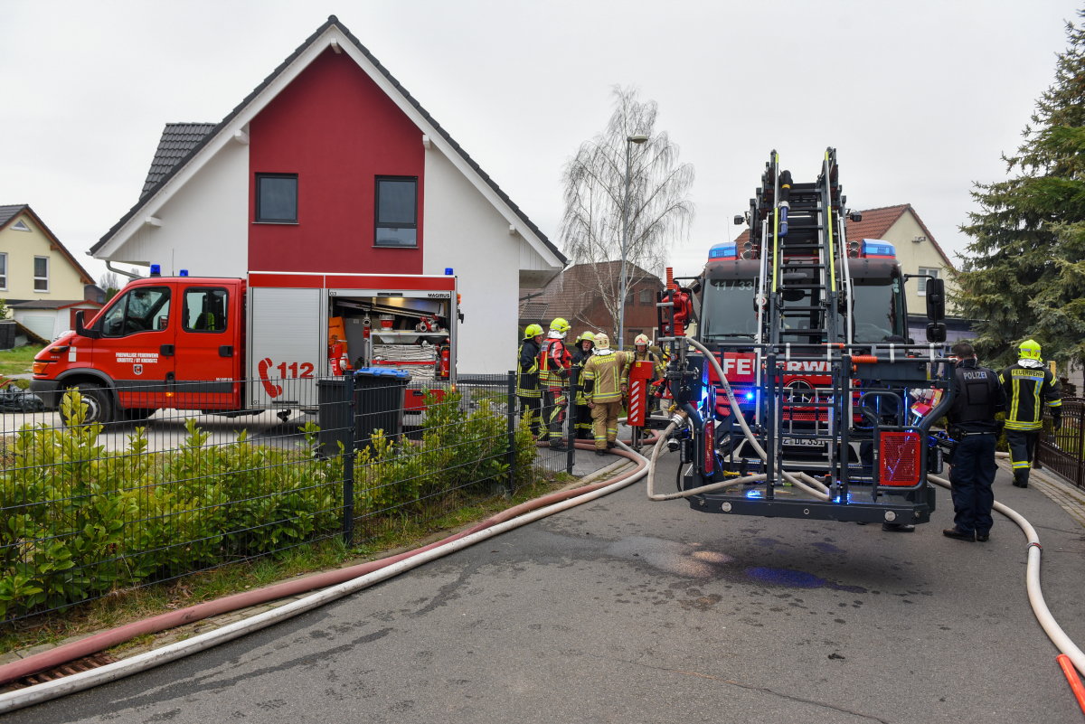 Nach Polizeiangaben brach kurz nach sieben Uhr ein Feuer im Dachgeschoss eines Einfamilienhauses am Lerchenweg aus. Es kam zu einer massiven Rauchentwicklung. Die Feuerwehr musste über eine Drehleiter das Dach öffnen, um die Löscharbeiten durchführen zu können. Durch den Brand wurde zudem eine Wasserleitung beschädigt was zu einem Wasserschaden im ganzen Haus führte. Personen kamen nicht zu Schaden.