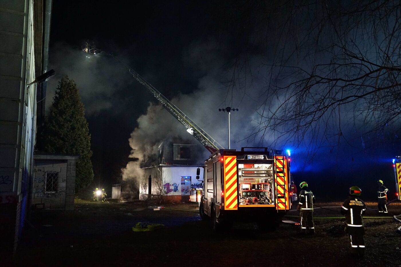 In Borna musste in der Nacht zum Dienstag die Feuerwehr ausrücken. Gegen 2:30 Uhr wurden die Einsatzkräfte in die Fabrikstraße alarmiert. Dort brannte es in zwei leerstehenden Gebäuden.