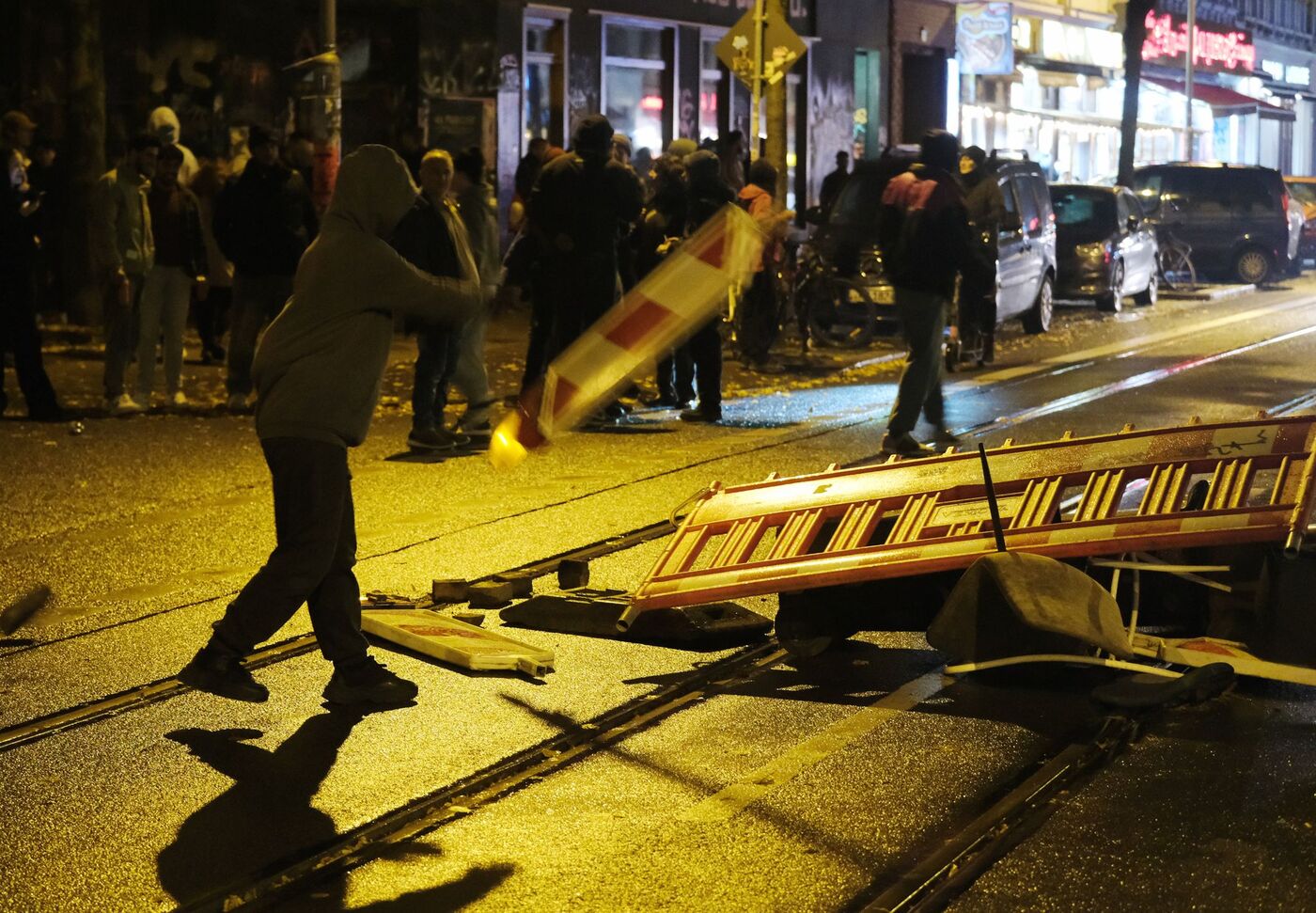 Linke Demonstranten zünden auf Eisenbahnstraße Barrikade an
