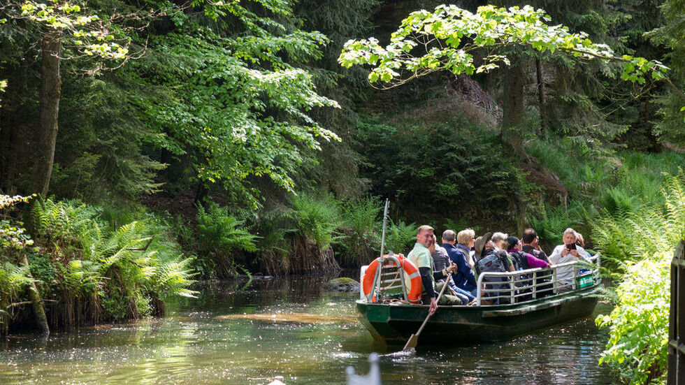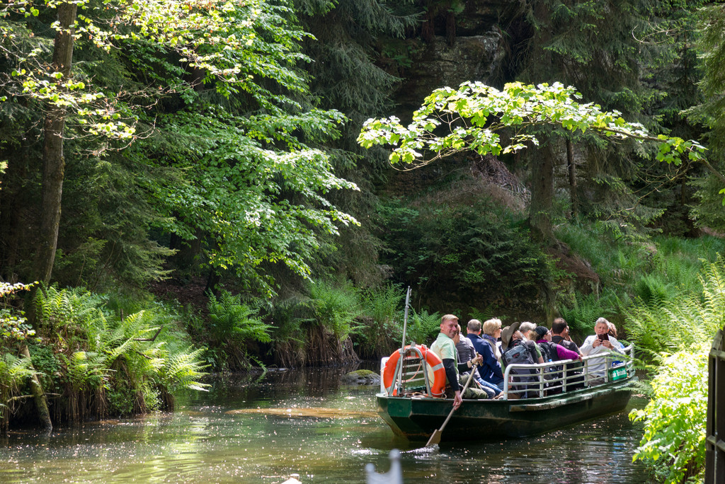 Es gibt wahnsinnig viel zu entdecken. In den Felsen verstecken sich nämlich überall kleine Tiere und Figuren. Zu denen haben die Kahnfahrer immer eine lustige Geschichte oder ein spannendes Märchen auf Lager. An der Staumauer endet die Kahnfahrt. Von dort aus könnt ihr über die Himmelsleiter zum Herrmannseck zurück wandern und Abends mit ganz vielen tollen Erinnerungen ins Bett fallen.