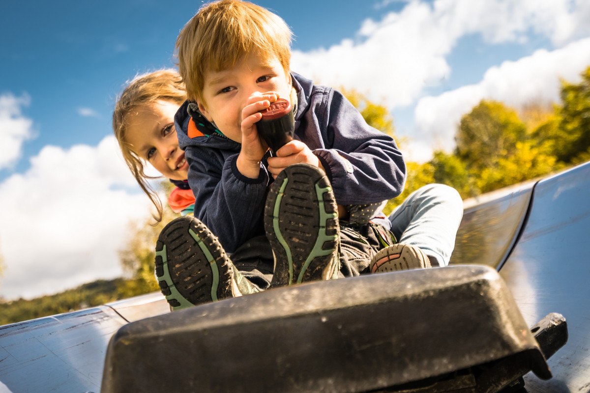 Wem die Rodelbahn zu rasant ist oder wer noch kleiner Kinder mitbringt, für den gibt es nebenan einen Abenteuerspielplatz mit Piratenschiff, Holzlaster und Co. Im Haus der Modellbahn drehen kleine Züge ihre Runden. Da gibt es ganz viel zu entdecken.