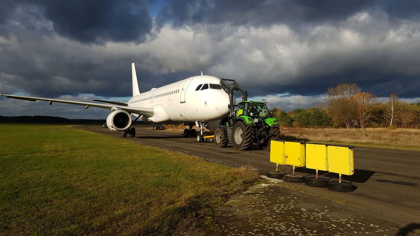 Im künftigen Flugzeugverwertungszentrum Rothenburg ist die erste Maschine gelandet. Der Airbus setzte heute Mittag auf. Er war in Tallin gestartet. Der A 320 wird in Rothenburg zerlegt. Zunächst werden die beiden Triebwerke abgenommen. Danach wird die Maschine in einen Hangar geschleppt. Dort werden weitere Teile demontiert.