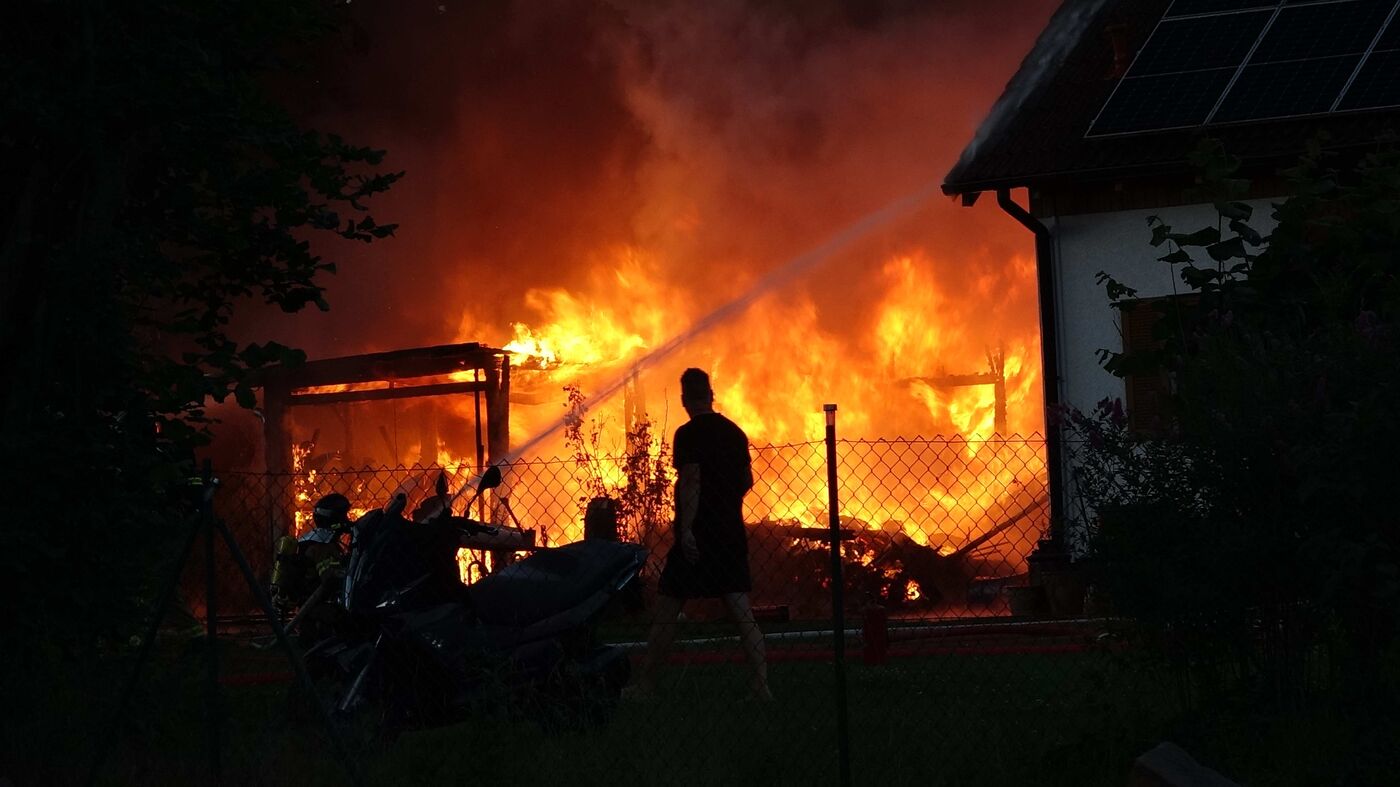 In Markkleeberg hat auf der Bornaer Chaussee am Donnerstagabend gegen 21 Uhr plötzlich eine Garage gebrannt. Als die Feuerwehr eintraf, stand die Garage bereits in voller Ausdehnung in Flammen. Eine massive Rauchentwicklung war weithin zu sehen, berichtet unser Reporter. Die Flammen griffen auch aufs Wohnhaus über.