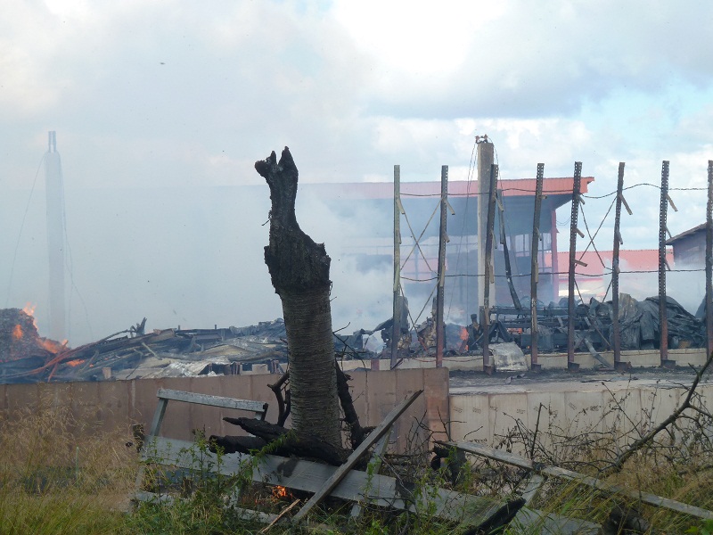 - Am Dienstag Abend und in der Nacht zu Mittwoch brannte es in der Holzfirma in Geithain lichterloh. Mittlerweile glimmen nur noch Glutnester (Foto: Redaktion)
