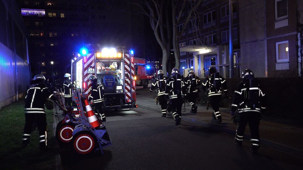 Feuerwehr rückt zu Hochhausbrand in Grünau aus