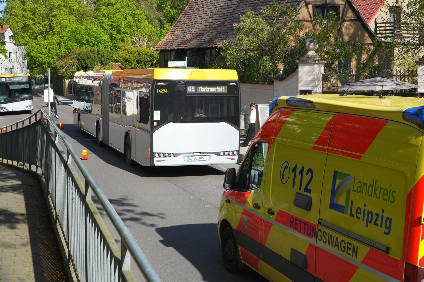 Markkleeberg: Fußgängerin (41) knallt gegen Bus - Klinik