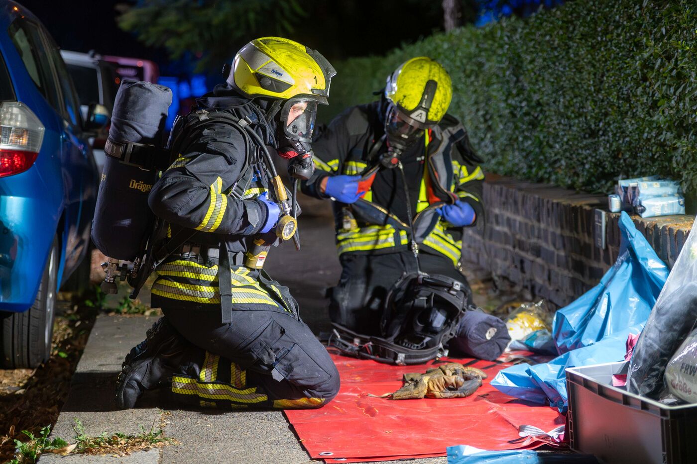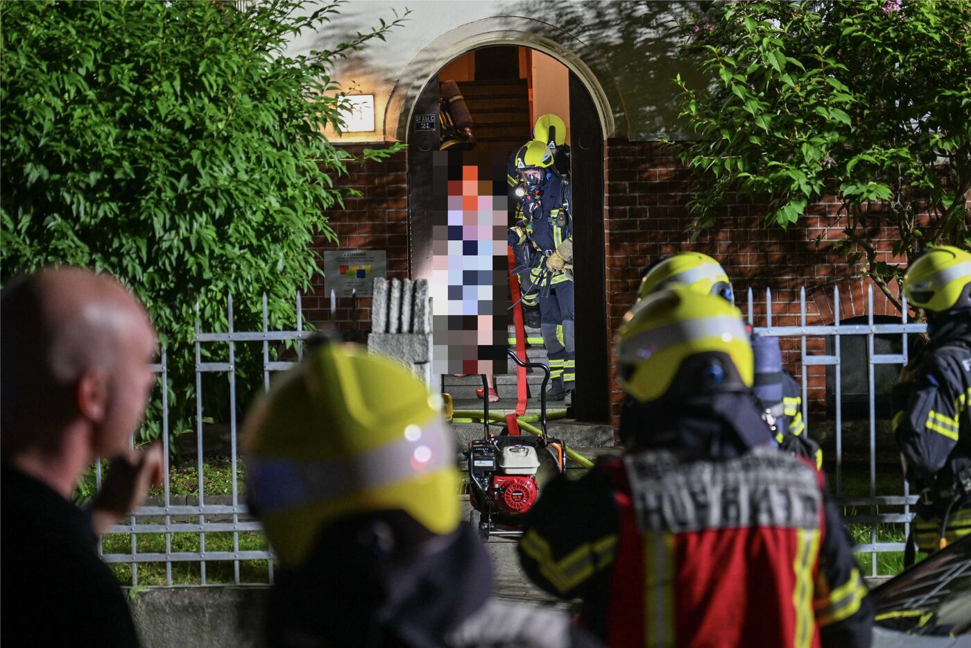 Wegen der starken Rauchentwicklung rückten Feuerwehrleute unter Atemschutz ins Haus vor, um nach Mietern zu suchen. Und wurden fündig: Sie holten eine Frau aus einer Dachgeschosswohnung, nachdem sie ihr eine sogenannte Fluchtschutzhaube (Atemschutz) übergestülpt hatten. Die Mieter der Brandwohnung waren bei Ausbruch des Feuers nicht zu Hause, berichtet ein Reporter vom Brandort. Alle anderen Bewohner hätten sich selbst ins Freie gerettet oder seien von der Feuerwehr evakuiert worden.