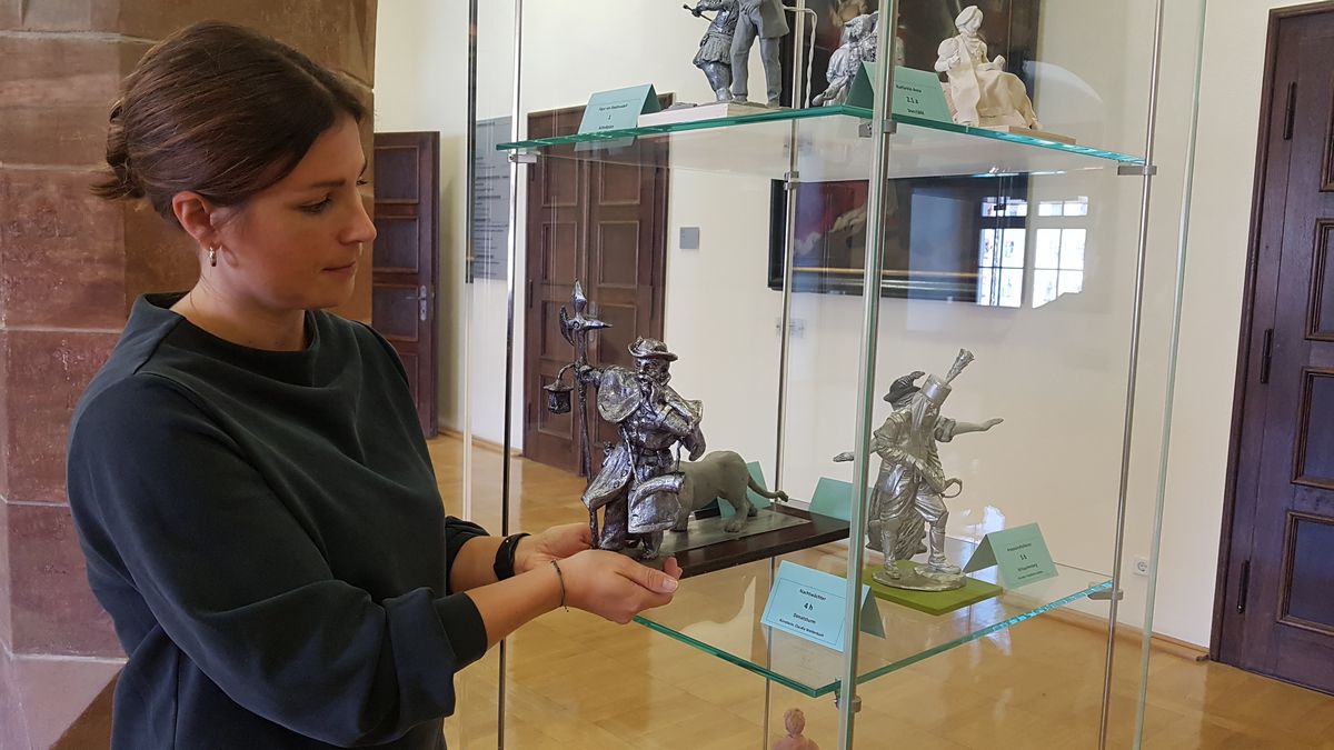 - Anne Büning, stellvertretende Direktorin des Stadt- und Bergbaumuseums, bestückt die Vitrine mit den Modellen für den geplanten "Silberstadtweg".