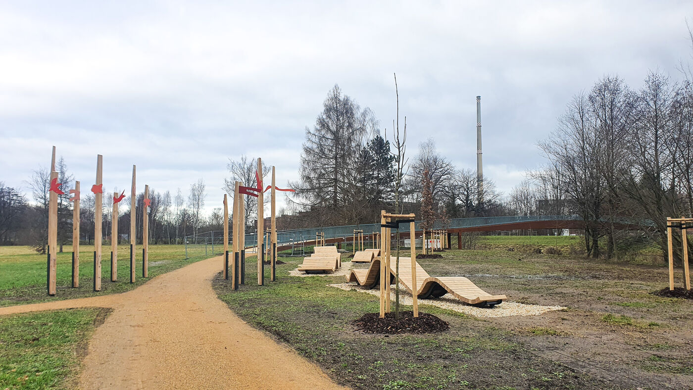 Neben Fitnessgeräten gibt es mehrere Liegebänke zum Entspannen. Wer mehr über das Flussbad Altchemnitz wissen will, den lädt das Chemnitzer Grünflächenamt für den 11. Januar zu einem Winterspaziergang ein.