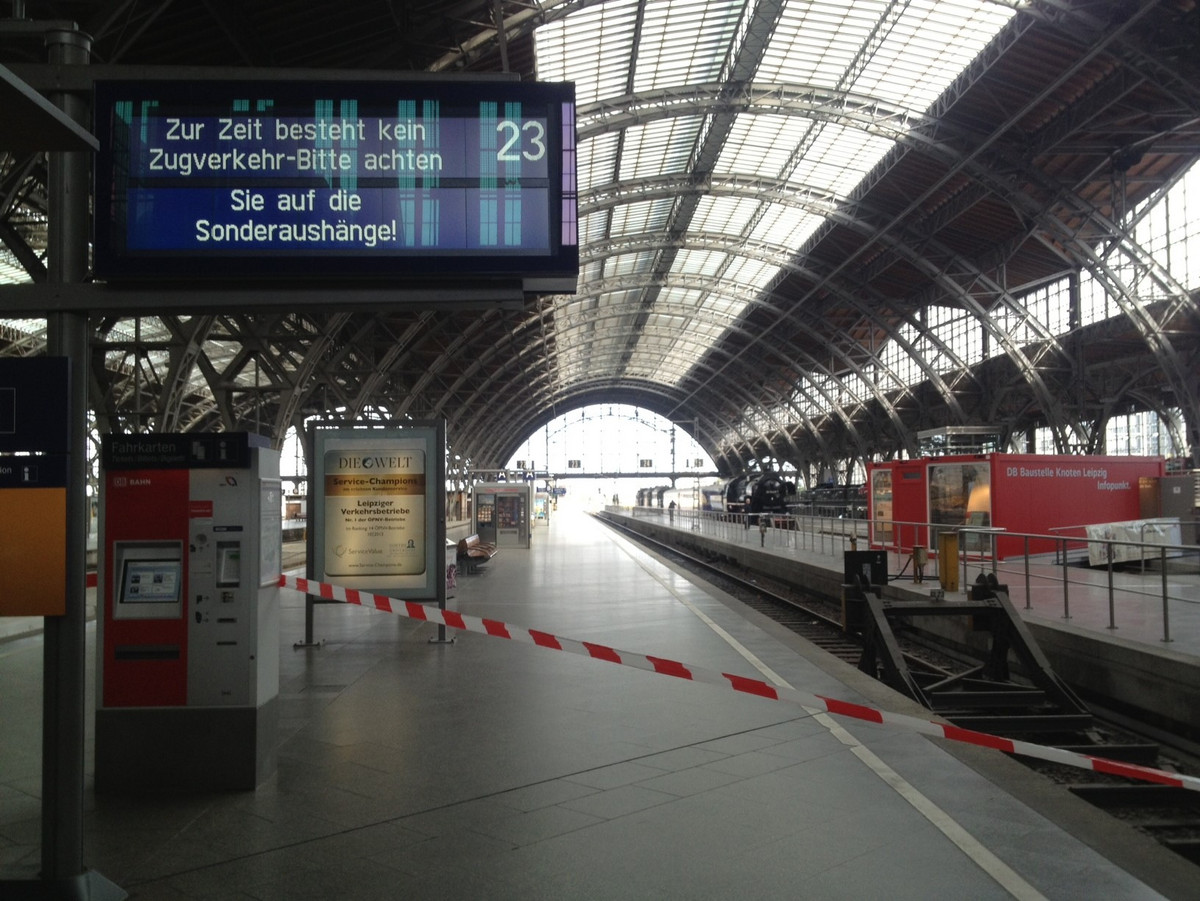 Bahnkunden müssen sich ab Mittwoch auf erhebliche Einschränkungen einstellen. Die Westseite des Leipziger Hauptbahnhofes muss wegen der Anbindung der ICE-Strecke Berlin-Nürnberg ab 8 Uhr bis Sonntagmorgen 8 Uhr gesperrt werden. Weder Nah- noch Fernzüge können den Hauptbahnhof aus Richtung Westen anfahren. Ersatzhalt ist der Bahnhof Leipzig-Messe. Das führt zu Umleitungen und Schienenersatzverkehr. So fährt etwa eine IC-Linie zwischen Magdeburg und Leipzig bis zum Sonntag nicht über Halle, weil sie über Bitterfeld umgeleitet wird. Auf der beliebten S-Bahn-Pendelstrecke Halle-Leipzig werden Busse eingesetzt. Kunden sollten sich auf der Homepage der Bahn oder vor Ort informieren. Die Geschäfte in den Promenaden sind wie gewohnt geöffnet.Erschwerte Anreise für FußballfansDie Bundesliga-Partie RB Leipzig gegen Borussia Mönchengladbach wird um 20 Uhr angestoßen. Die Red Bull Arena ist ausverkauft - über 42.000 Fußballfans werden erwartet. Die Anreise könnte durch die Hauptbahnhof-Sperrung schwierig werden. Die Leipziger Verkehrsbetriebe verstärken deshalb Bahnen (16/16 E) und Busse (56), die zur Messe pendeln. Zwischen 17 und 20.30 Uhr ist dann das Waldstraßenviertel wieder für den Autoverkehr gesperrt. Nur noch Anwohner, die sich ausweisen können, dürfen die Absperrungen passieren.