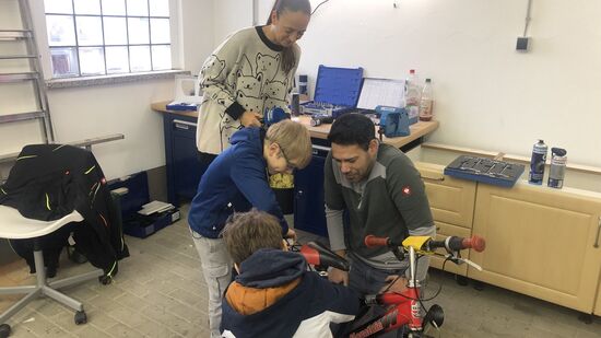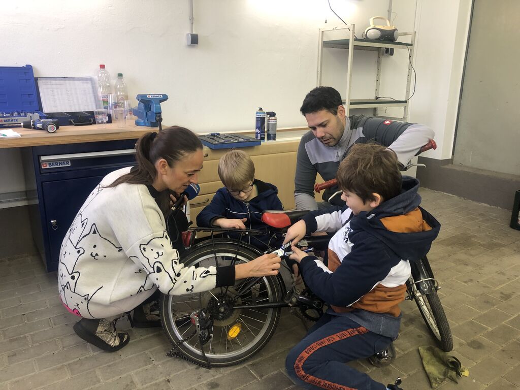 Es gab einiges zu tun für die Jungs: Licht kontrollieren, Reifendruck prüfen und die Kette richten. Einrichtungsleiterin Annett zeigt sich zufrieden: „Nach dem Kurs sind die Kinder immer stolz wie Bolle. Auch der Kontakt zu einer männlichen Bezugsperson ist wichtig, da bei uns in der Einrichtung doch eher Frauen arbeiten.“