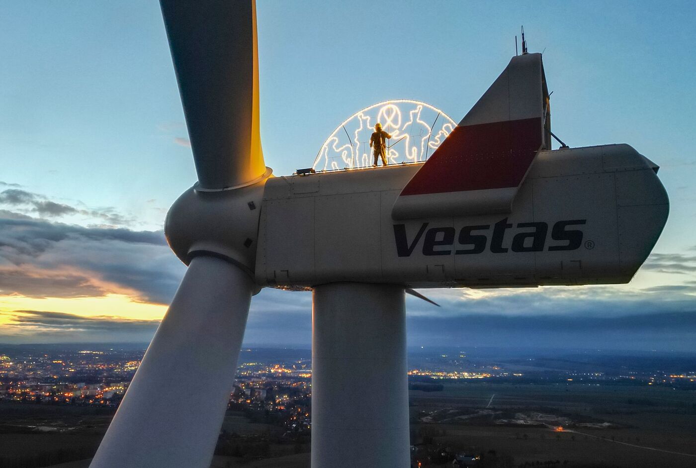 - Der sechs Meter große Lichterbogen mit dem Schwarzenberger Motiv leuchtet in 140 Metern Höhe auf dem Maschinenhaus der Windkraftanlage.