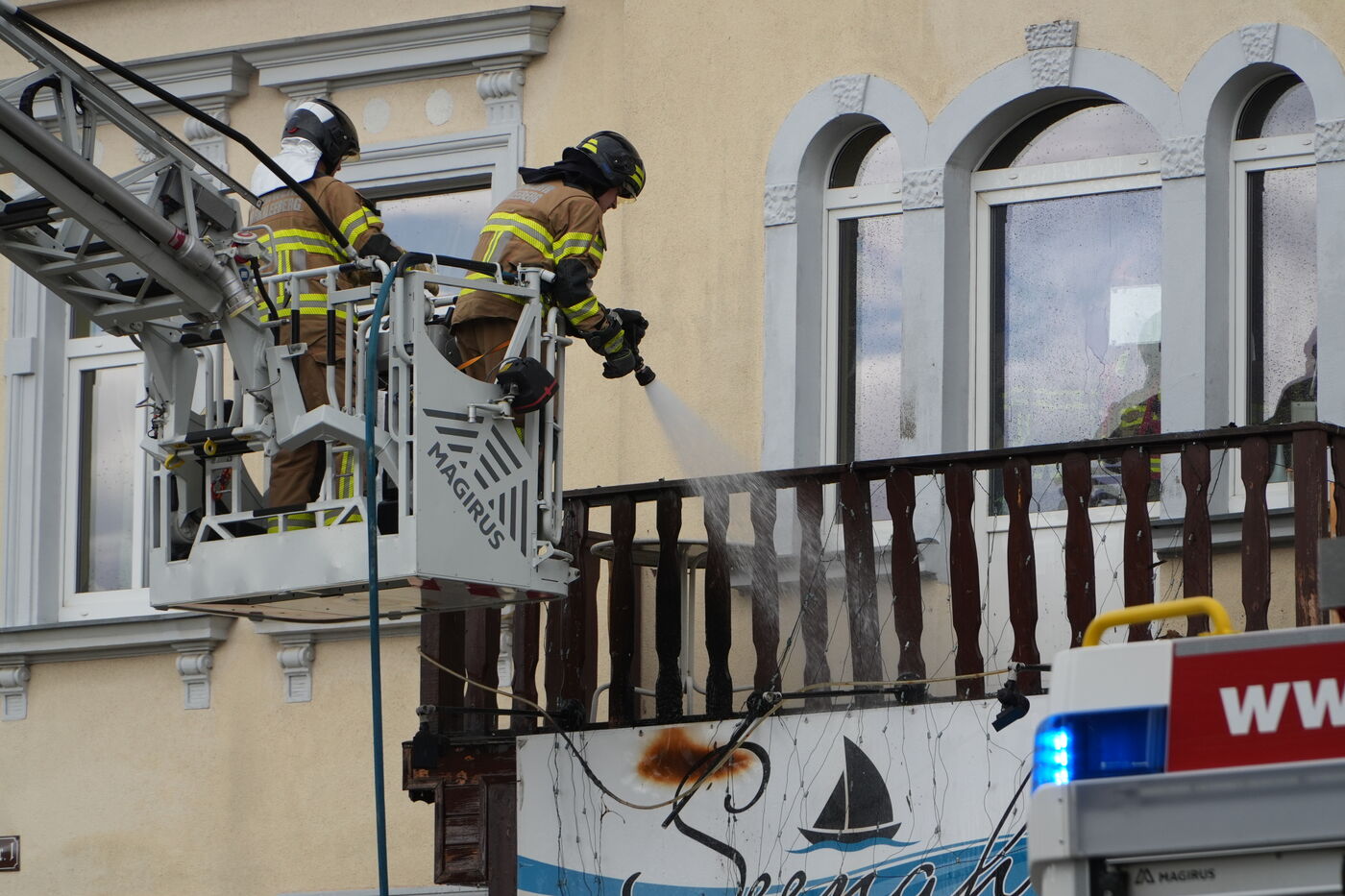 Viel zu tun am Wochenende für die Feuerwehren in und um Leipzig: Auch im Markkleeberger Ortsteil Wachau hat am Sonntagnachmittag gebrannt. Ein schöner Holzbalkon eines Wohnhauses (Pension, ehemalige Gatsstätte) an der Liebertwolkwitzer Straße hat Feuer gefangen. Wehrleute löschten von der Drehleiter aus und zerlegten den Balkon später noch wegen möglicher Glutnester. Die Brandursache ist bisher nicht bekannt.