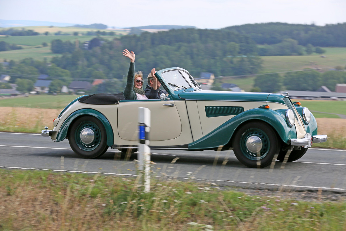 - Die Startnummer 59 hatten Sonja und Dieter Zimmermann aus Langenbersdorf mit ihrem IFA F8 Cabrio (Baujahr 1954). Foto: Ralph Koehler/propicture