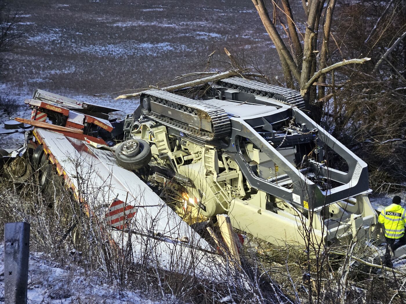 Horrorunfall auf A9 - Trucker wird unter Bagger begraben und stirbt