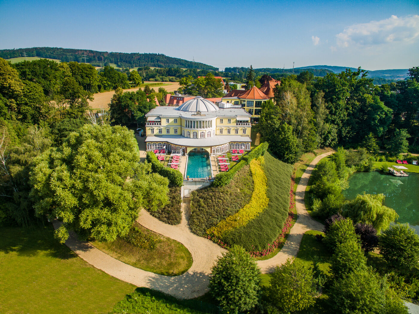 Im neueren Teil unseres Hauses erwartet Sie der ca. 1.300 qm große SEEFLÜGEL mit modernster SPA-Ausstattung, lichtdurchfluteten Lounges und dem ersten Flying Pool Deutschlands.Hoch über dem Boden schwimmen – mit Weitblick in die Baumwipfel – das ist nicht nur ein architektonisches Highlight, sondern ein Moment des echten Glücksgefühls.Wer sich bewegen möchte, findet ebenso sein Glück bei Yogastunden oder einem Spaziergang durch den weitläufigen Hotelpark