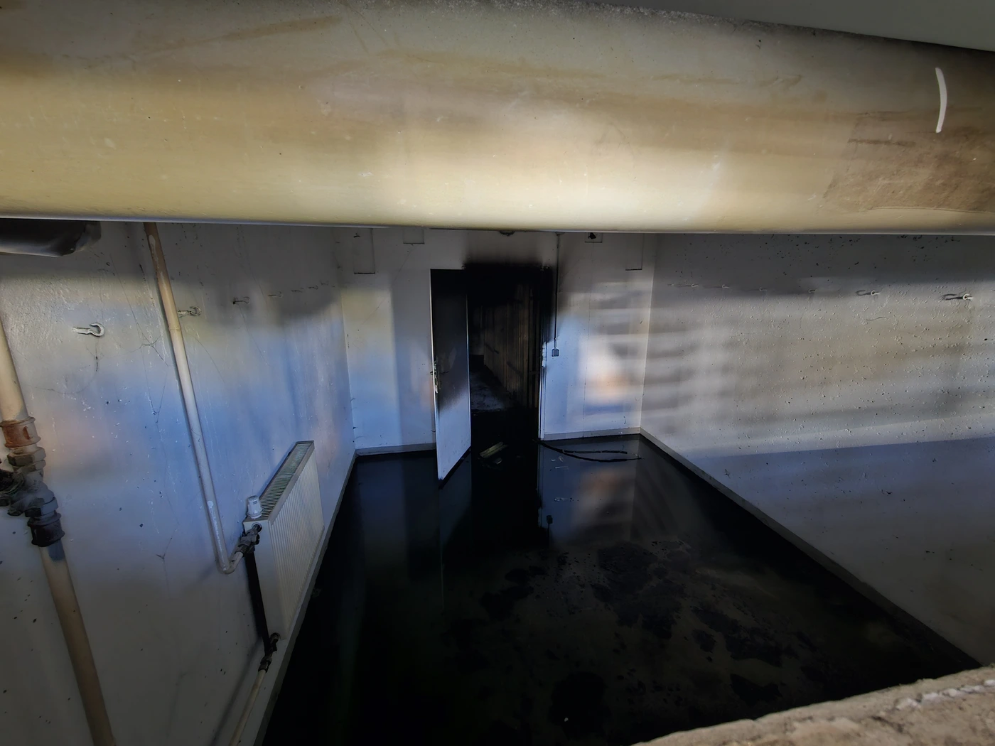 - Der ausgebrannte Keller nach dem Löscheinsatz.