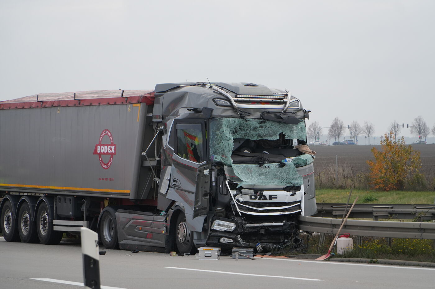 - Das ist der Lkw mit dem Schilderwagen, auf den der andere Laster aufgefahren ist.