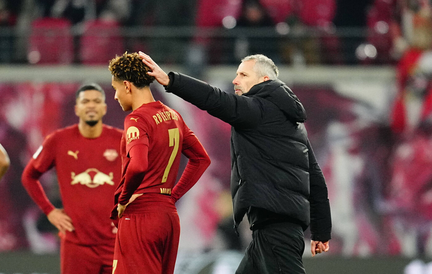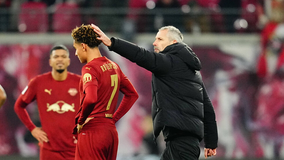 Hinsichtlich des Verletzungspechs sprach er von einem „Teufelskreis“. Denn Castello Lukeba musste frühzeitig mit einer Muskelverletzung vom Platz. „Das ist echt bitter“, sagte Abwehrchef Willi Orban. Der RB-Kapitän rechnet nicht mit einer Kurschlusshandlung der RB-Verantwortlichen auf der Trainerposition: „Nö“, meinte Orban: „Weil Marco es einfach herausragend macht, er passt einfach zu uns, weiß genau, wie wir spielen wollen. Da ist es aktuell eine schwierige Phase, es ist einfach alles gegen uns gelaufen. Ich hoffe, dass wir Mittwoch die Wende schaffen, wir ein gutes Ergebnis schaffen und Ruhe reinkommt.“ (mit dpa)