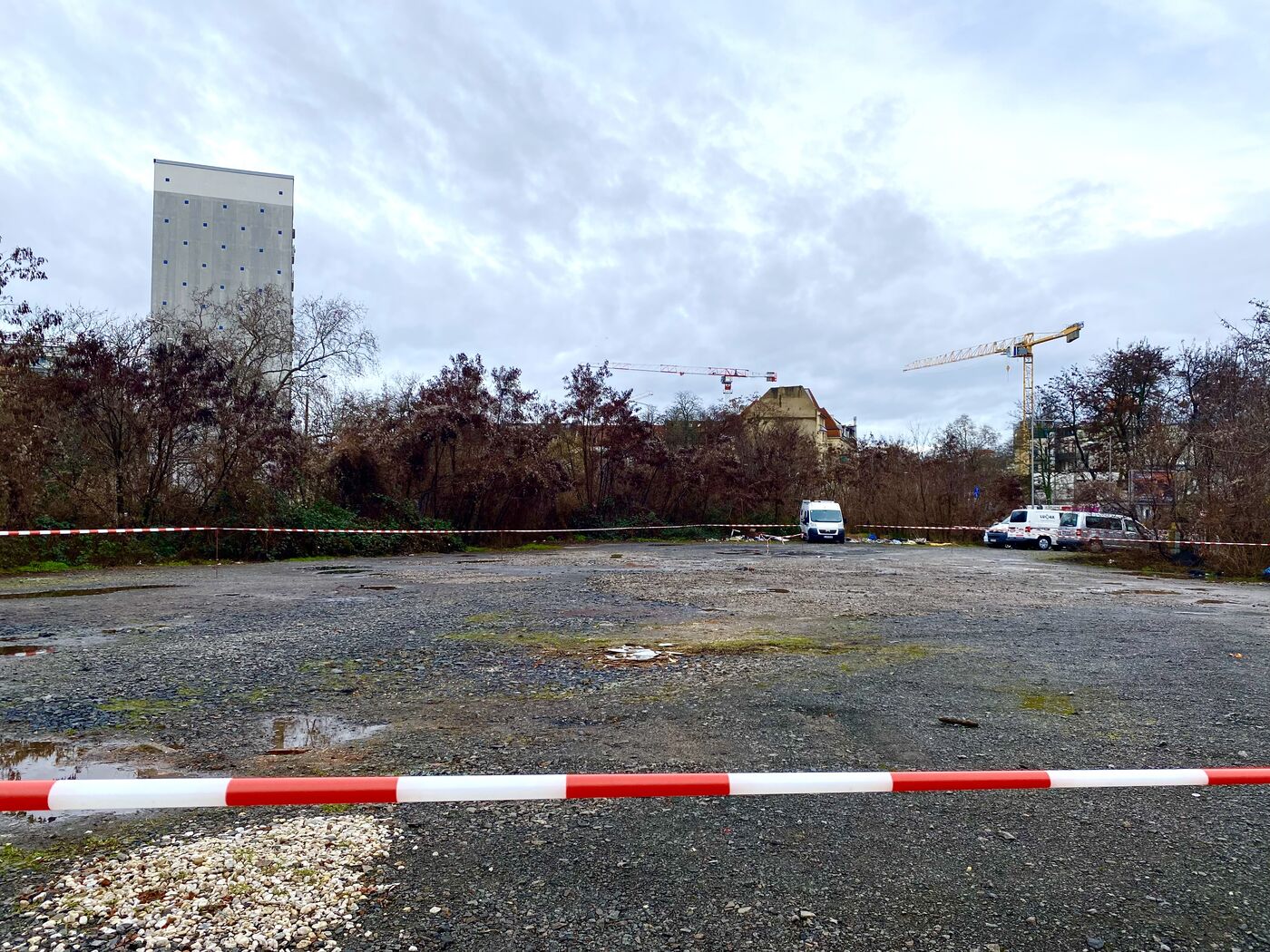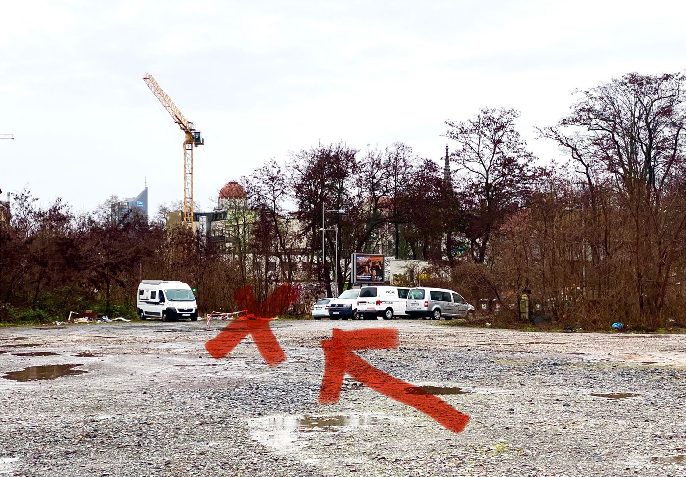 - Der abgesperrte Parkplatz an der Braustraße gegenüber der sächsischen Landesdirektion in Leipzig.
