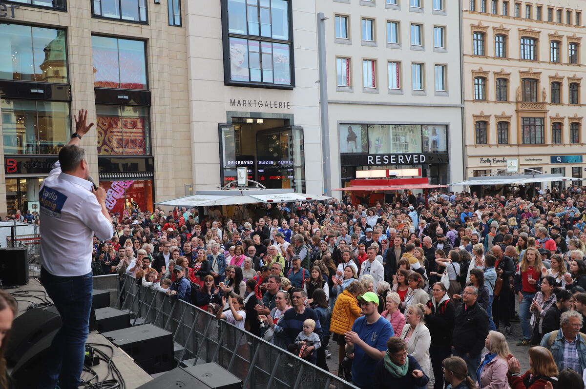 Wie das Stadtfest hat auch Radio Leipzig sein 30-Jähriges gefeiert. Unser Beitrag zum Fest: Am Samstag spielten Newcomerin Loi und Chartstürmer Kamrad auf der Marktbühne. Unser Moderator und DJ Roman Knoblauch hat am Abend mit Hits der 80er und 90er den Augustusplatz zum Beben gebracht, Und auf dem Markt wurde das DFB-Pokalfinale zwischen RB Leipzig und Eintracht Frankfurt live übertragen.