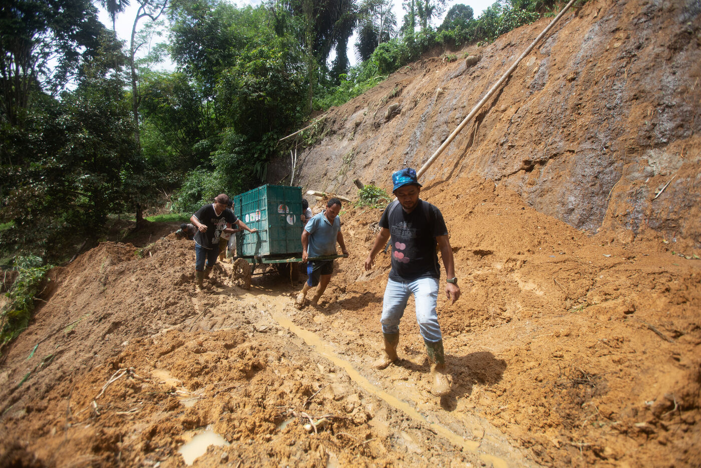 - Der Schlamm ist nach mehreren Erdrutschen überall in der Auffangstation.