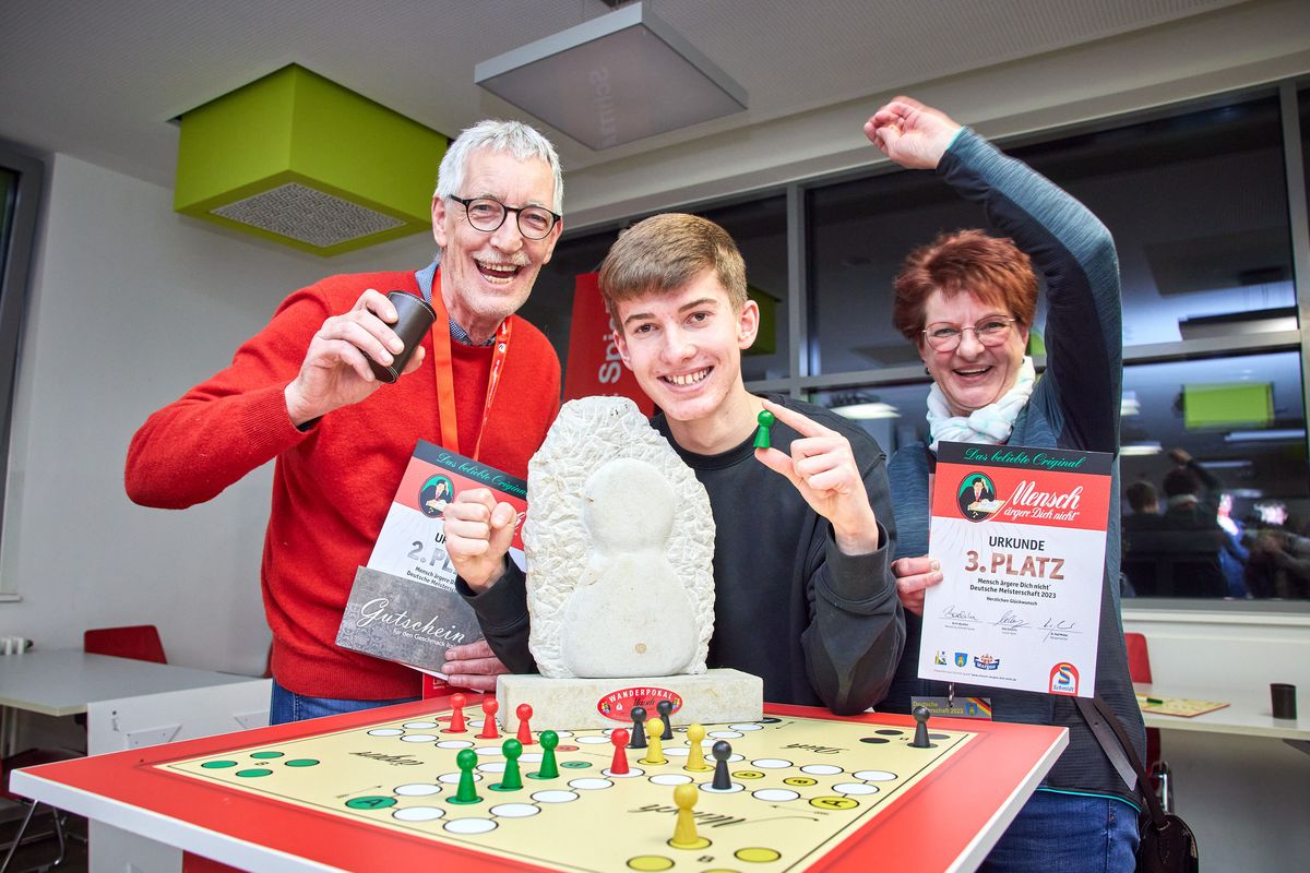 Der 19-jährige Niclas Müller aus Leipzig ist der Sieger der Deutschen Meisterschaft im „Mensch ärgere dich nicht“ in Dohna im Müglitztal ( LK Sächsische Schweiz-Osterzgebirge). Der Azubi zum Fahrdienstleiter bei der Deutschen Bahn nimmt damit im Jahr 2023 den Pokal mit nach Hause.
