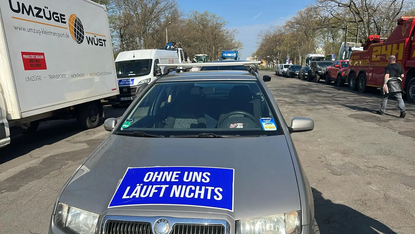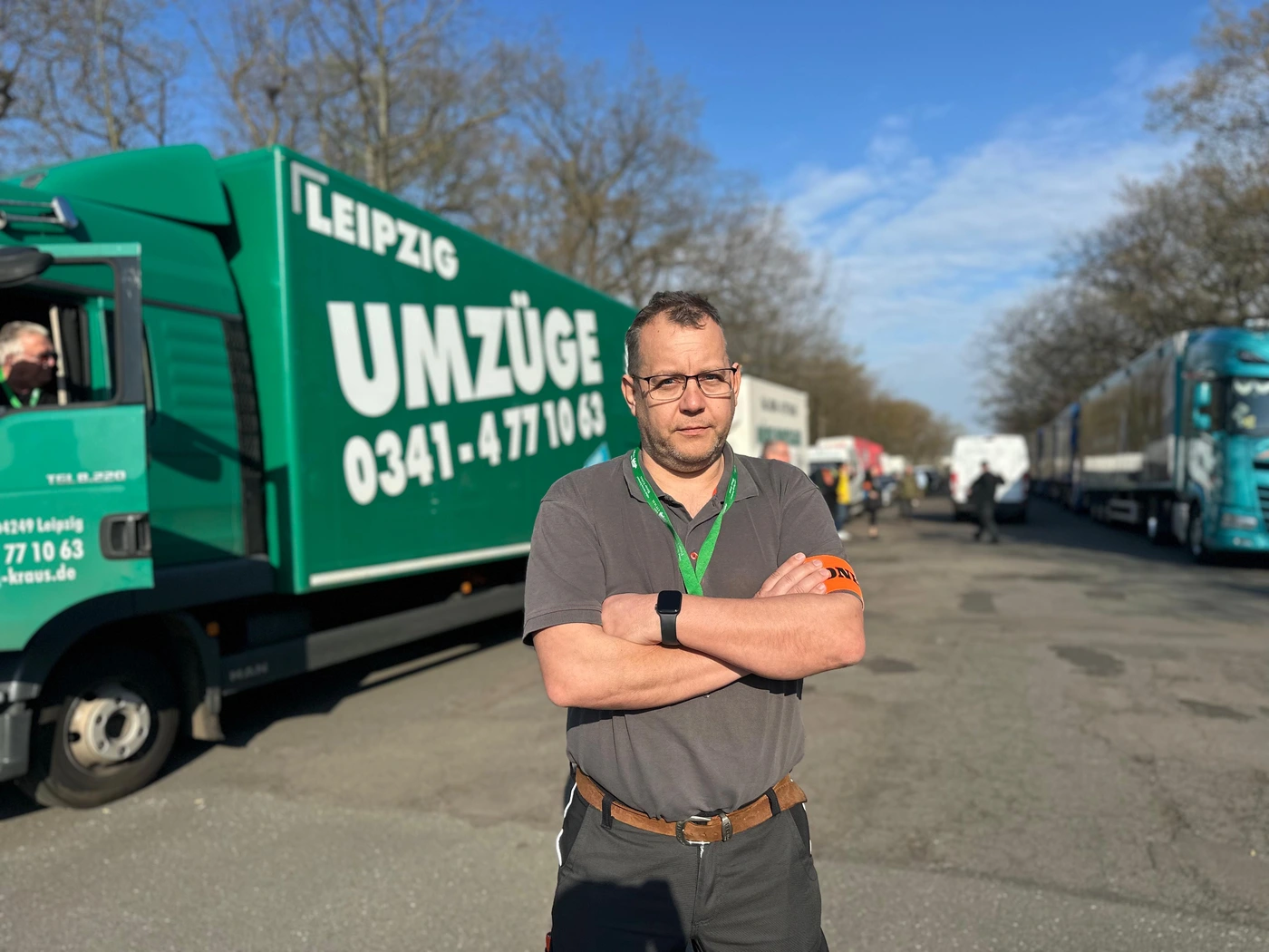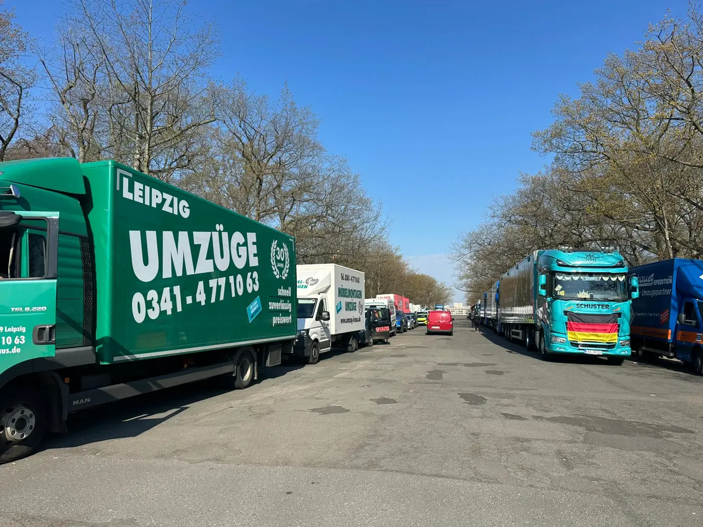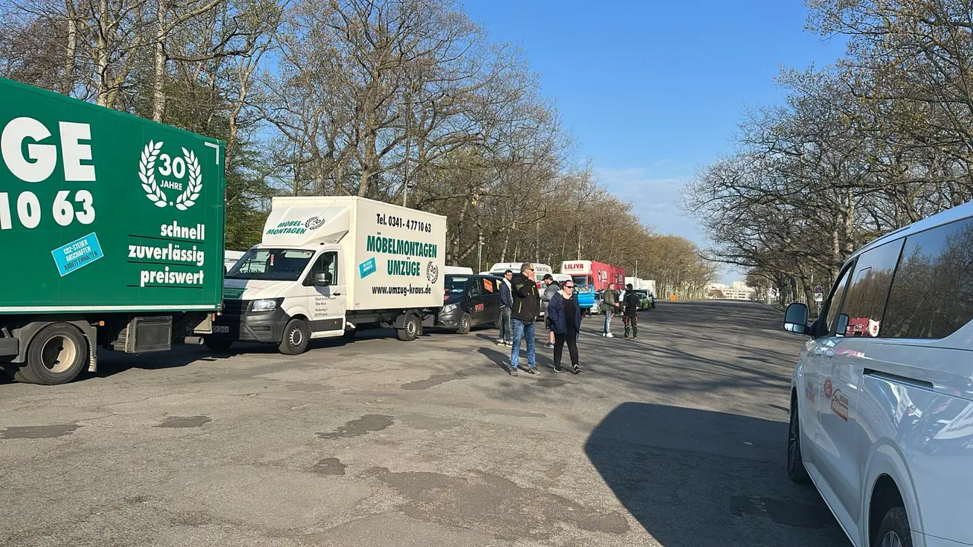 Bisher sind erst etwa 50 Menschen mit Lkw, Autos und Transportern vor Ort. Es werden aber minütlich mehr.