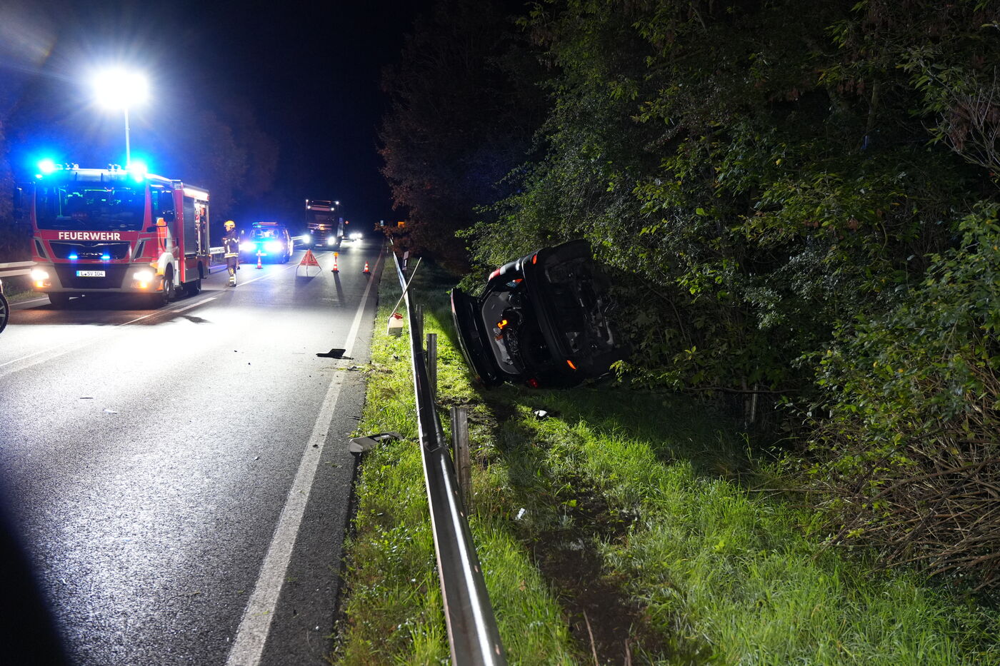 Bei dem Fahrer habe es sich laut Polizei um einen 31-jährigen Deutschen gehandelt. Er sei zum Glück nur leicht verletzt worden. Warum er die Kontrolle über das Fahrzeug verlor, ist unklar. Der entstandene Sachschaden wurde auf rund 21.000 Euro geschätzt.