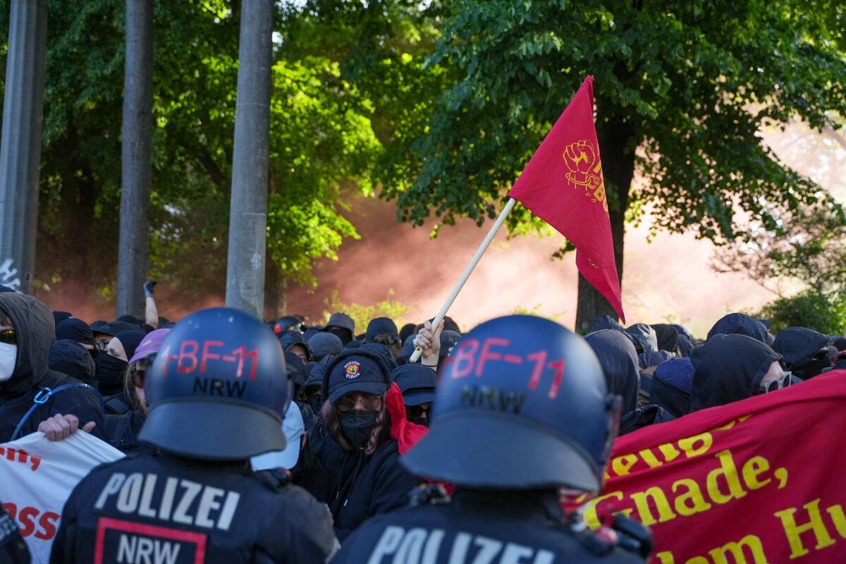 Die Lage hat sich nach den Ausschreitungen bei der Demo am Alexis-Schumann-Platz entspannt, teilte die Polizei mit. Es wurden Identitäten festgestellt und Personen festgenommen. Die Kriminalpolizei hat die Ermittlungen u. a. zum Vorwurf des Landfriedensbruch aufgenommen.