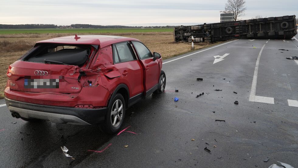 Laut Polizei habe der Audi-Fahrer (34) nach links auf die B 87 abbiegen wollen und den Lkw dabei übersehen. Beim Zusammenstoß kippte der Sattelzug um. Der Trucker (51) wurde dabei schwer verletzt und später ins Krankenhaus gebracht. Der 34-Jährige und sein 2-jähriges Kind blieben unverletzt, kamen aber zur Beobachtung ebenfalls ins Krankenhaus. Der Schaden wurde auf über 50.000 Euro geschätzt.