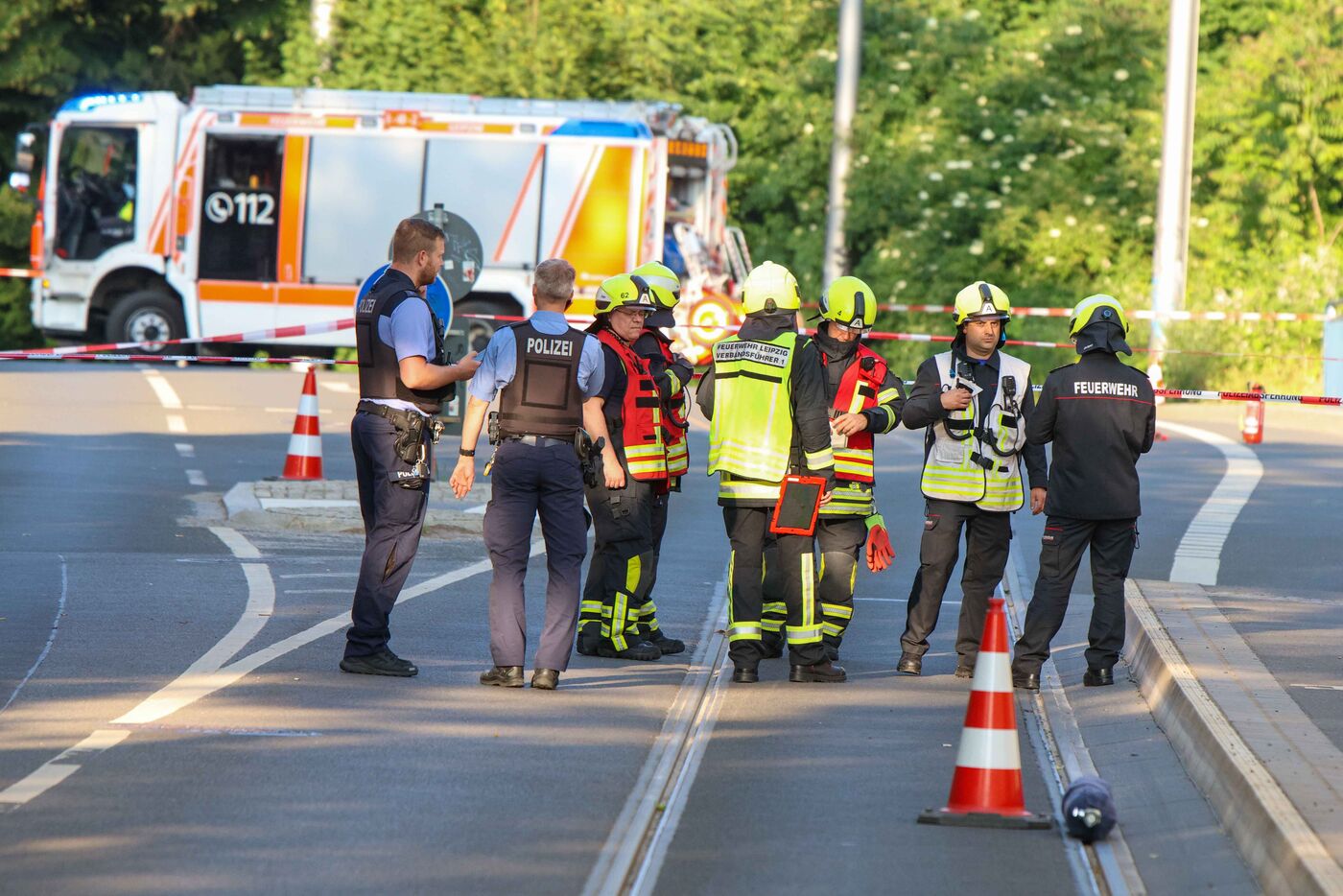 - Die Leipziger Feuerwehr rückte mit ihrem ABC-Gefahrenzug an.