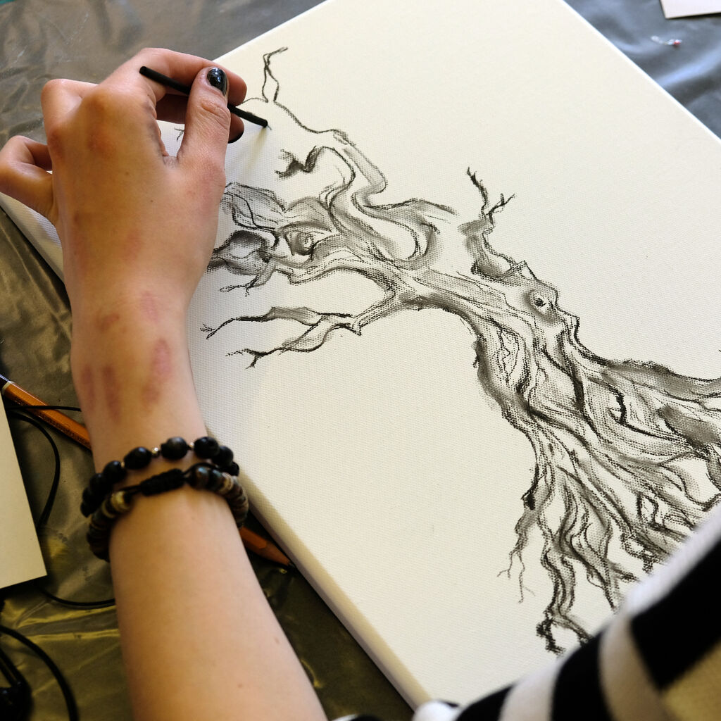 Eine Woche lang haben die beiden Kunsttherapeuten Anne Pinkert und Peter „Pit“ Müller mit Kindern aus verschiedenen Kinderarche-Wohngruppen den Steinsaal in Radebeul in ein Atelier verwandelt. Mit Stift und Papier, Pinsel und Farbe, Leinwand und Kohle durften die Mädchen und Jungen ihrer Phantasie freien Lauf lassen. Entstanden sind wunderbare Werke, die von der Titanic über Abendstimmungen und Meereswesen bis hin zu Blumen oder Bäumen reichen.