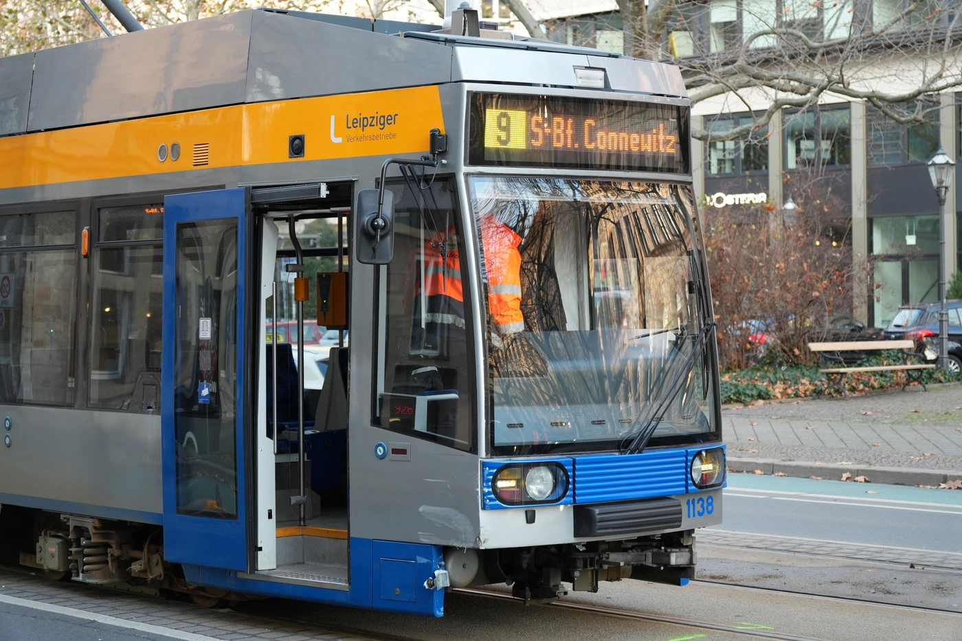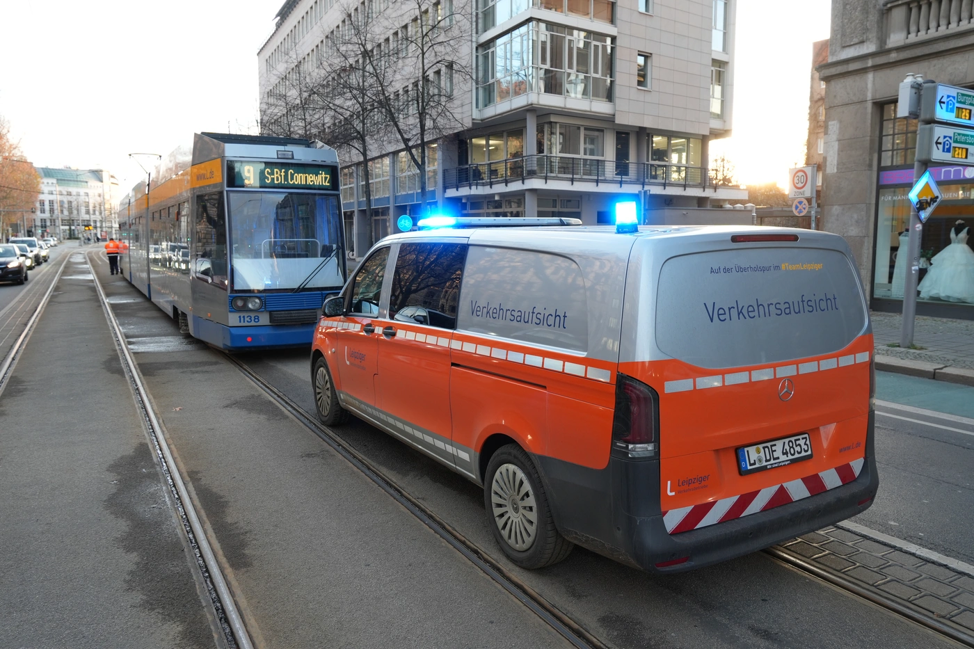 - Die Unfallstelle auf dem Martin-Luther-Ring in Leipzig.