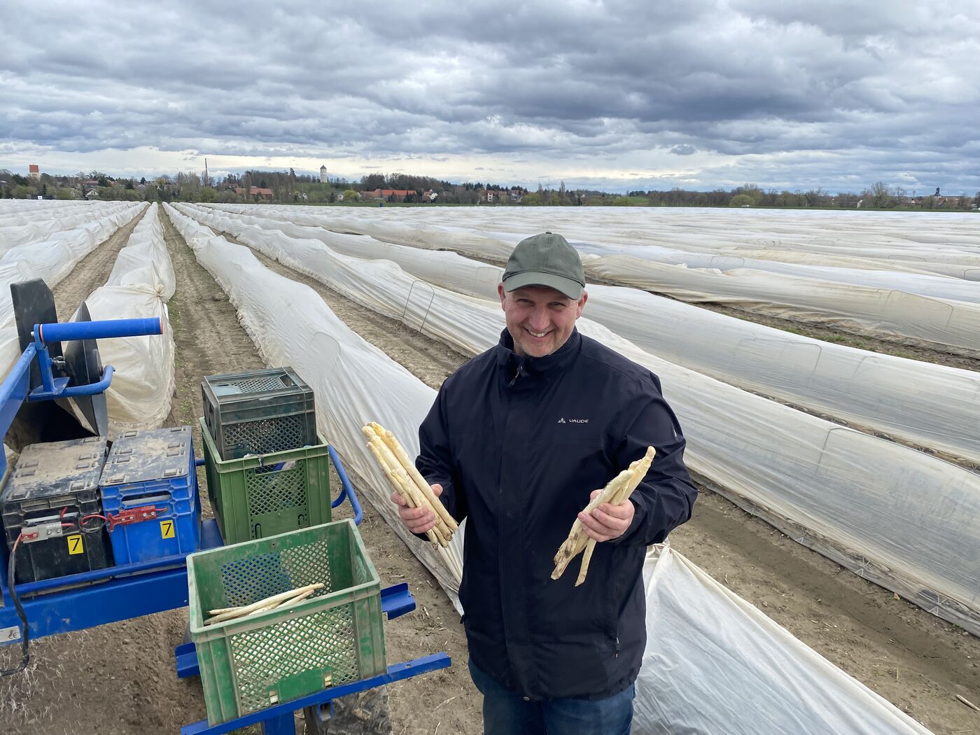 - Ingolf Tautz auf seinem Spargelfeld in Frankenheim bei Leipzig.