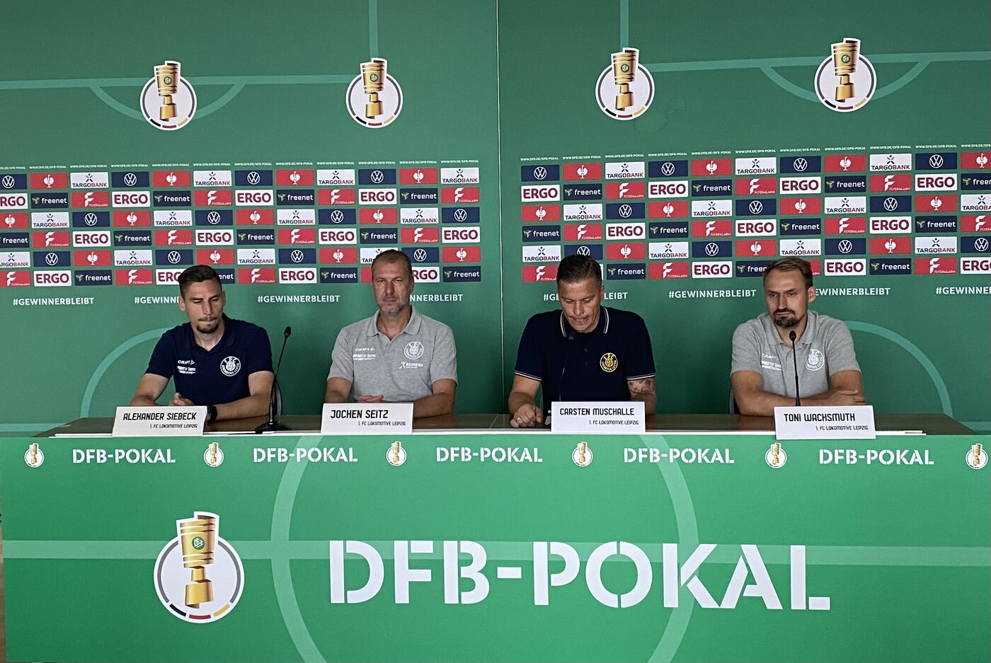 - Die Verantwortlichen von Lok Leipzig bei der Pressekonferenz vor dem DFB-Pokalkracher am Sonntag gegen Schalke 04.